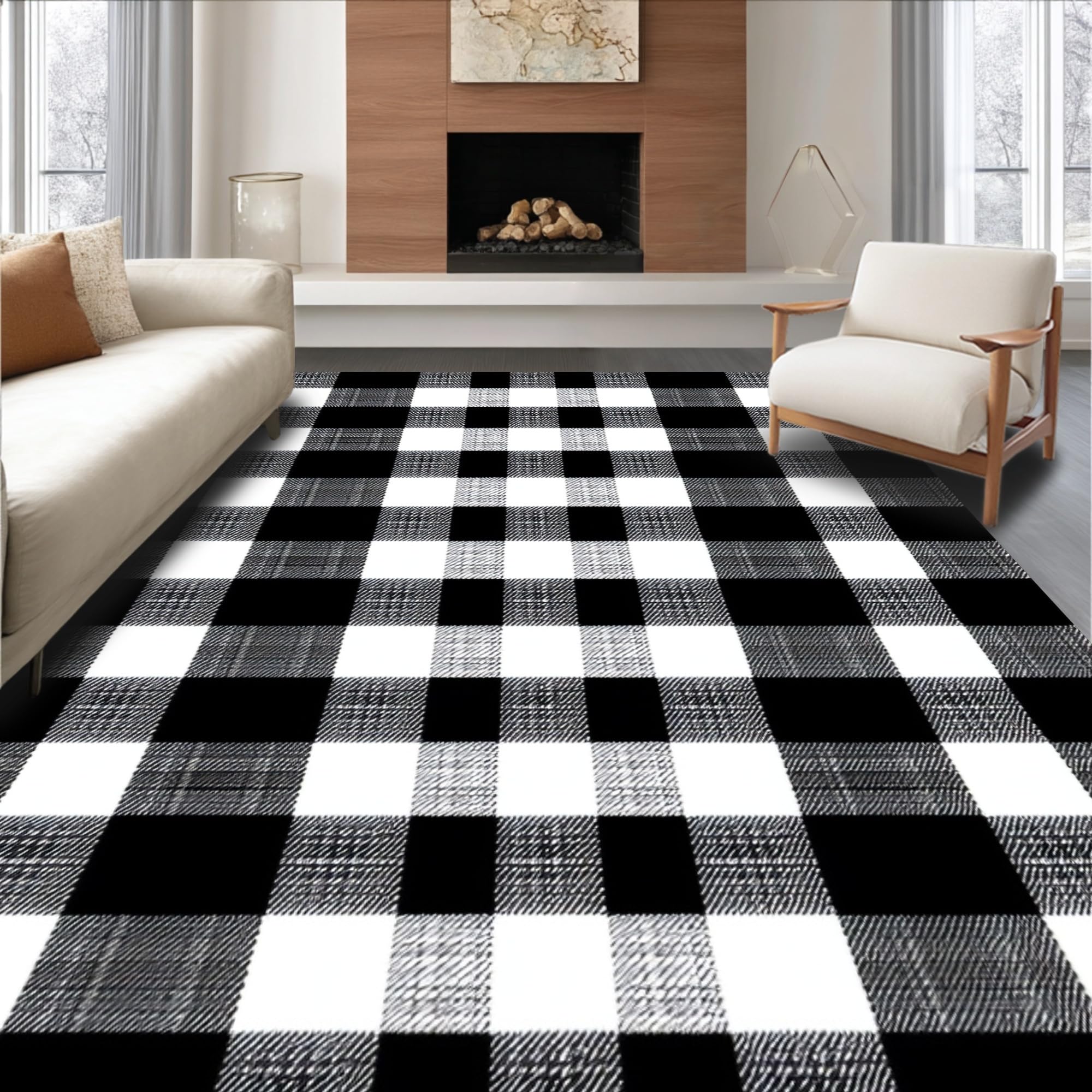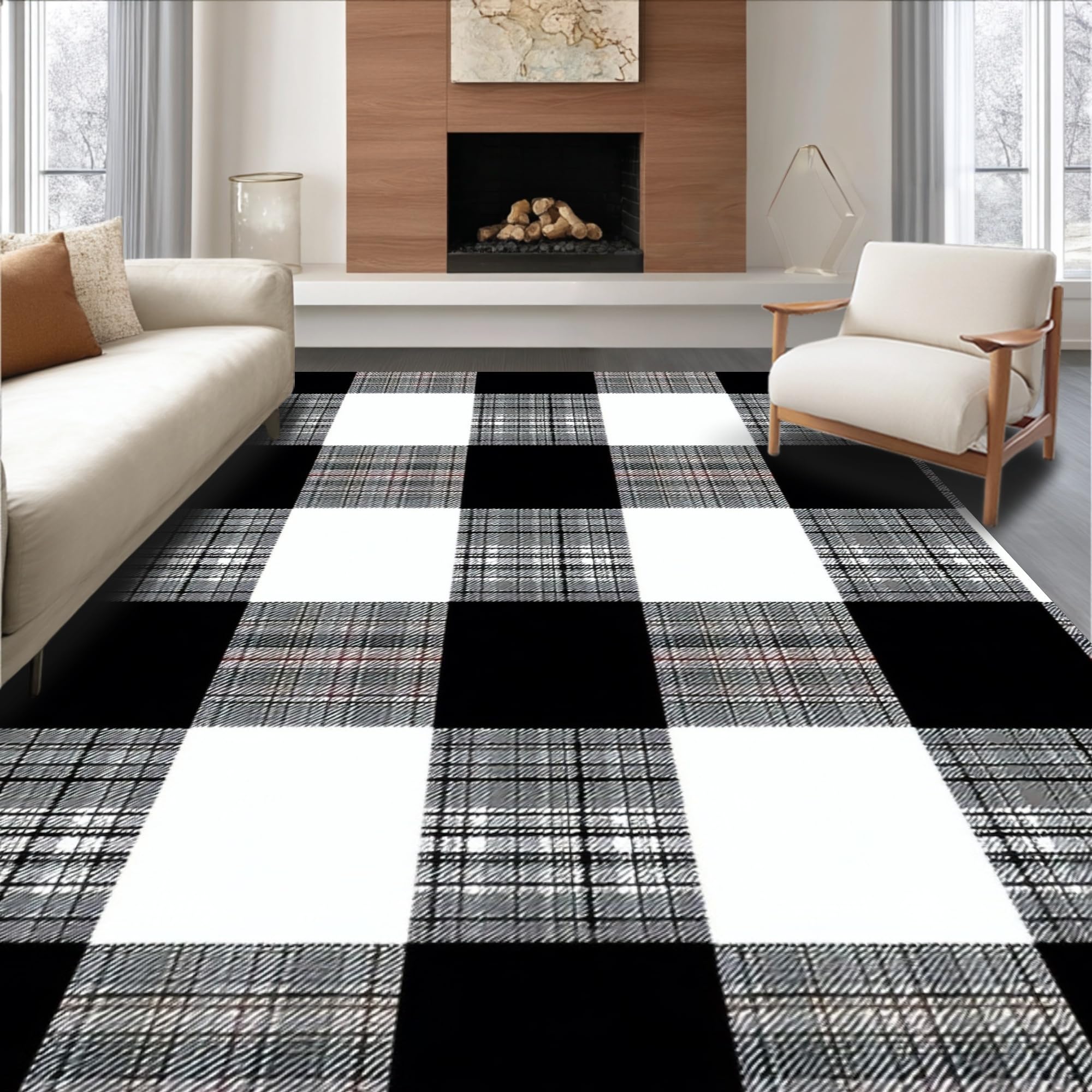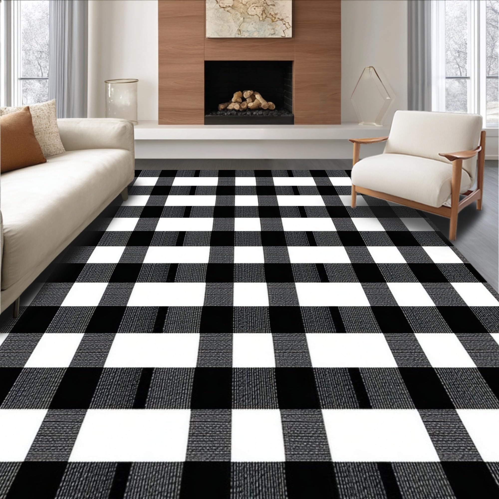 Rustic Black and White Check Motif(Black)