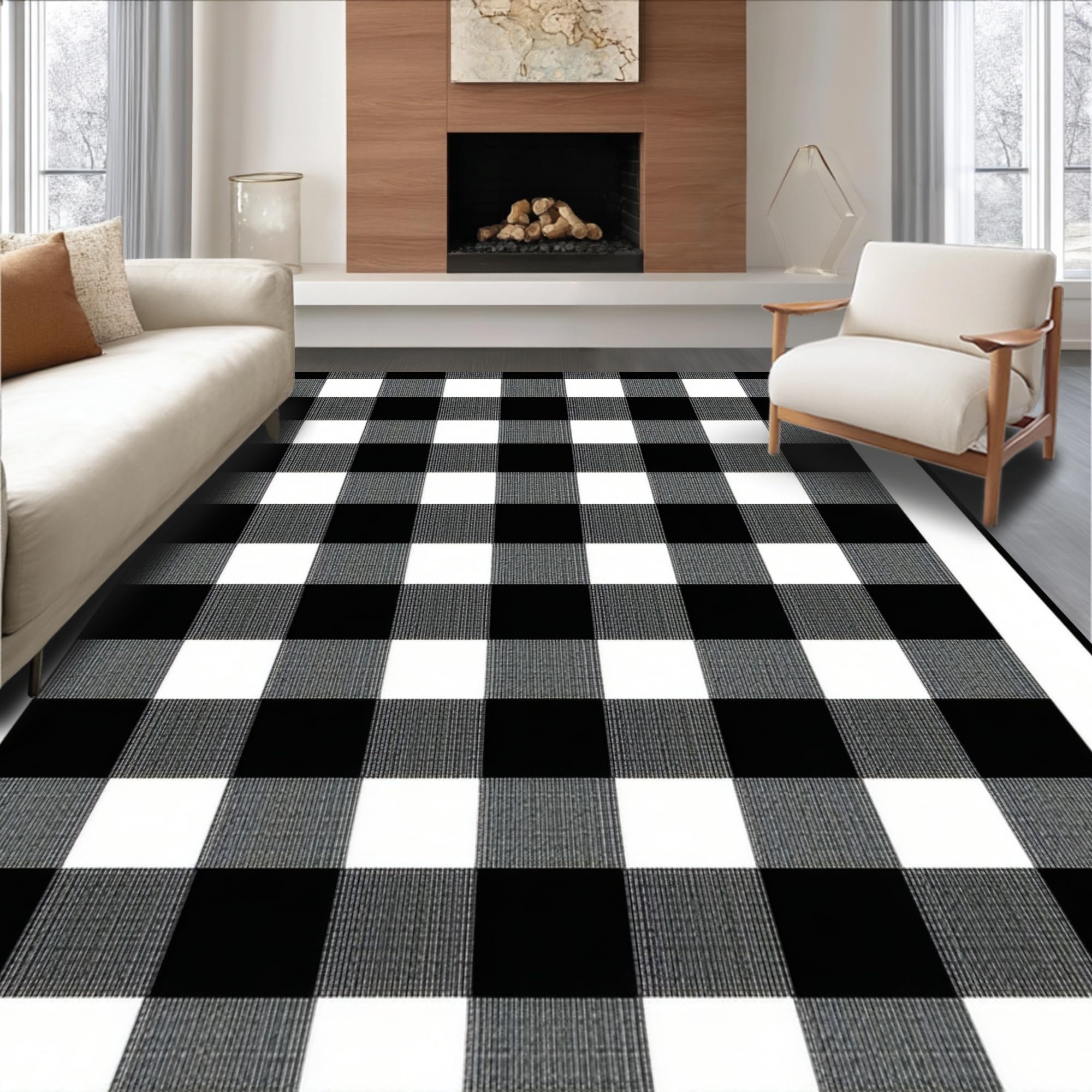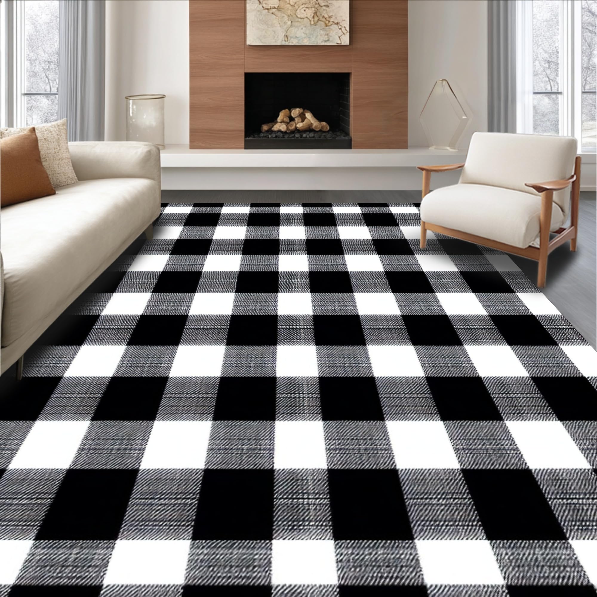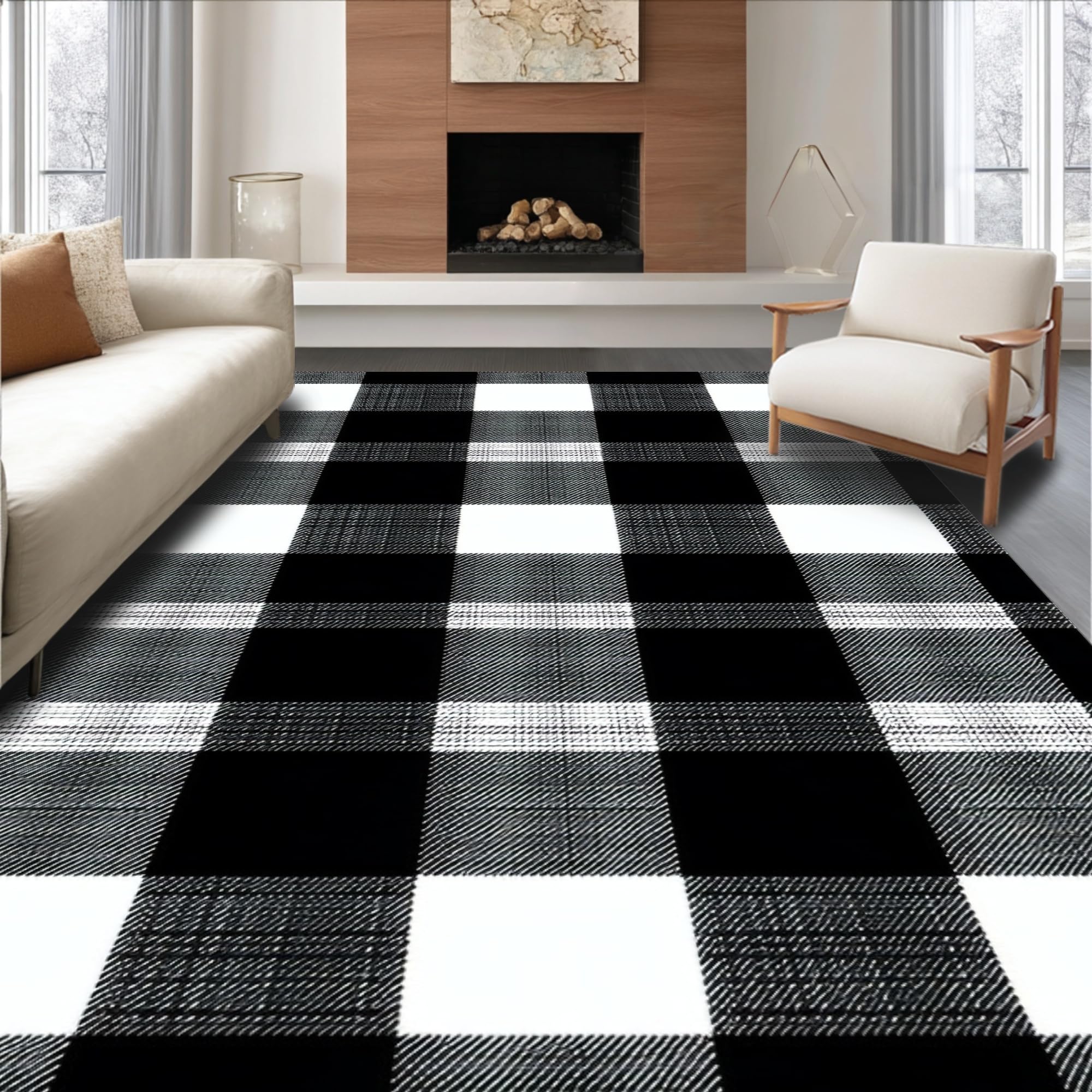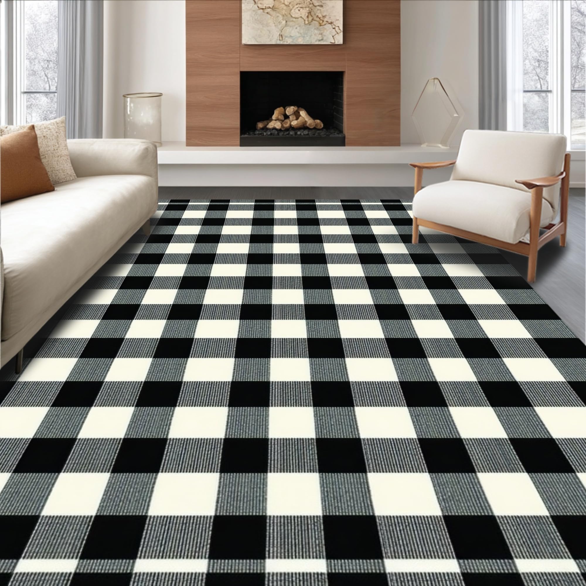 Rustic Black and White Check Motif(Black)