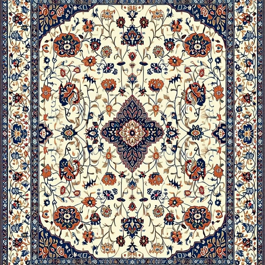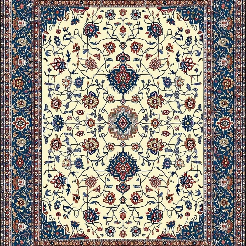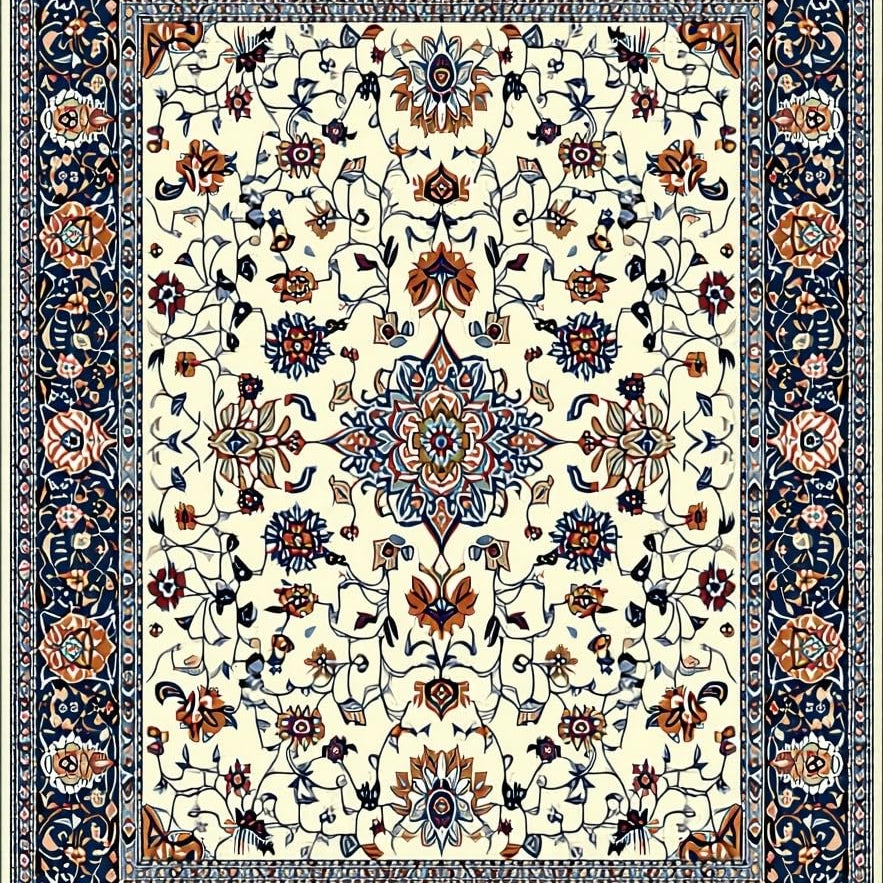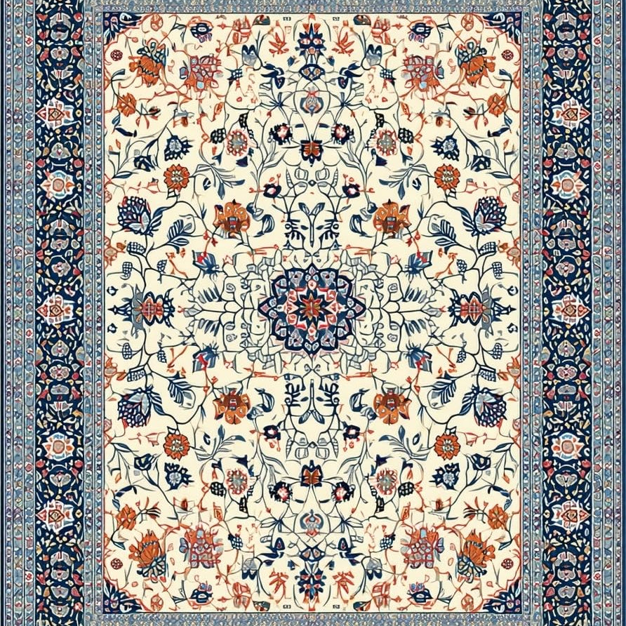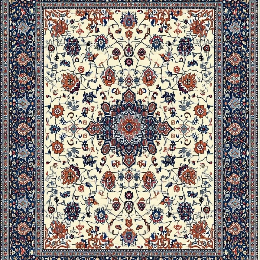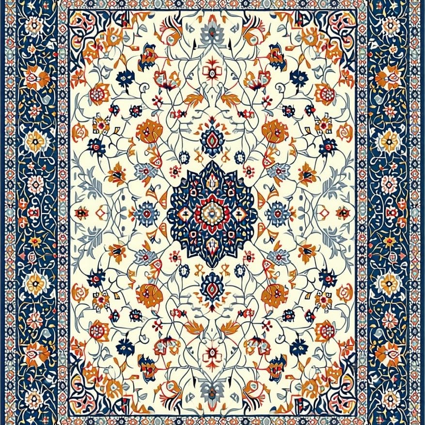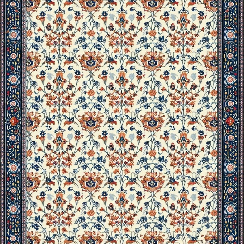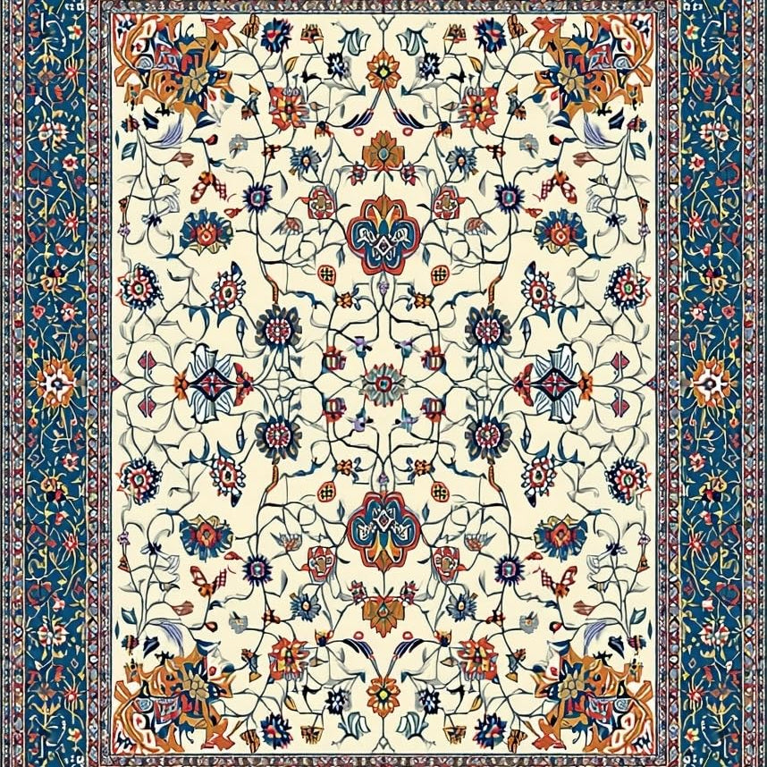 Artistic Floral Motif in Blue(Ivory)