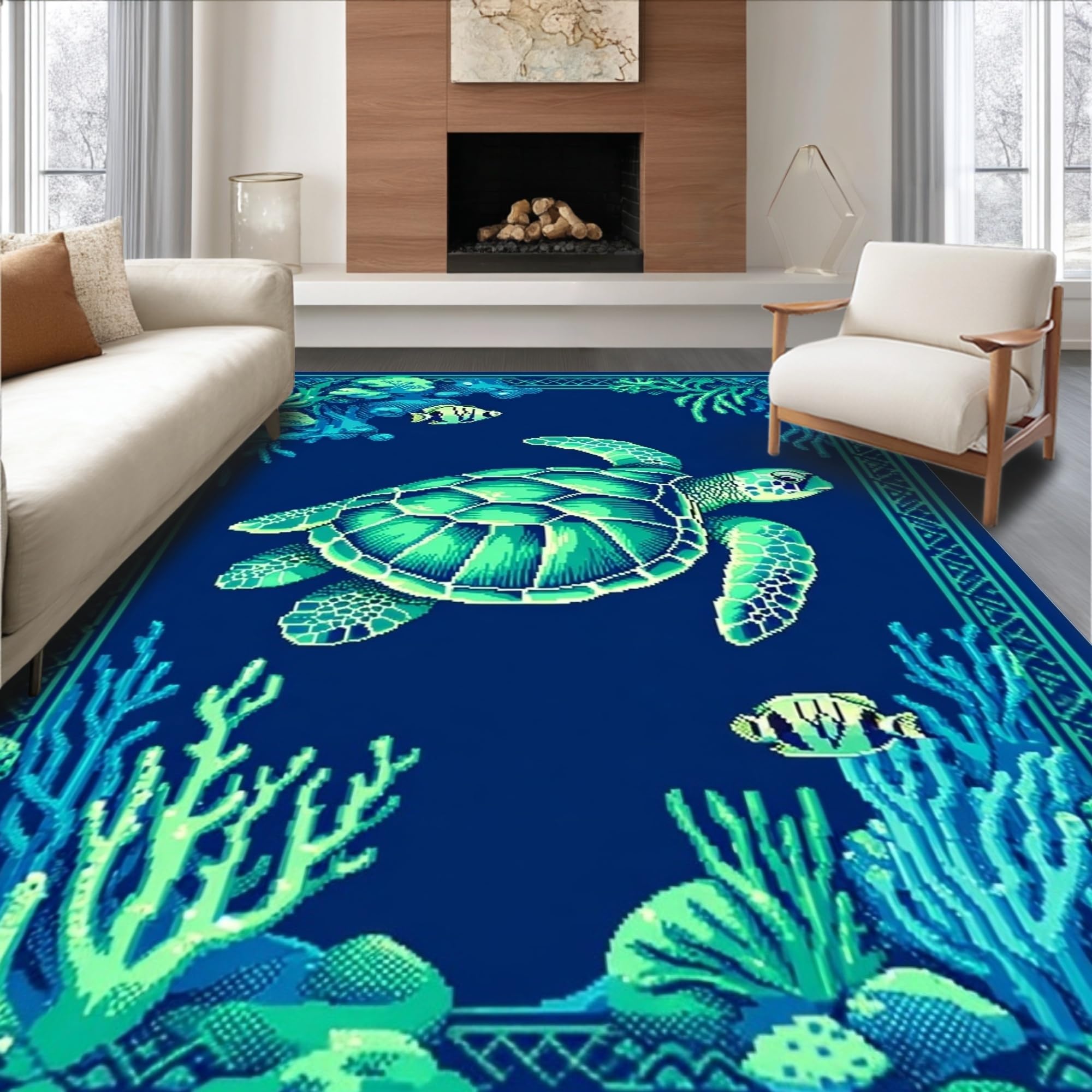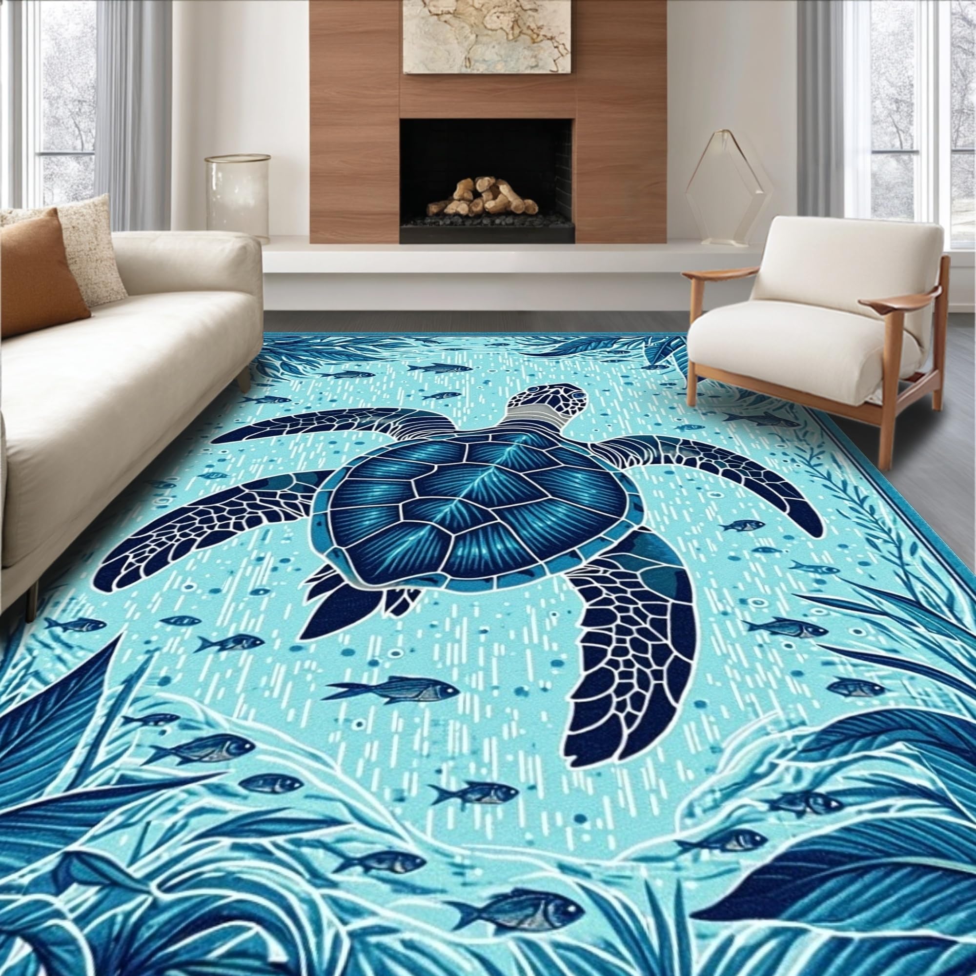 Contemporary Ocean inspired Entryway Mat(Blue)