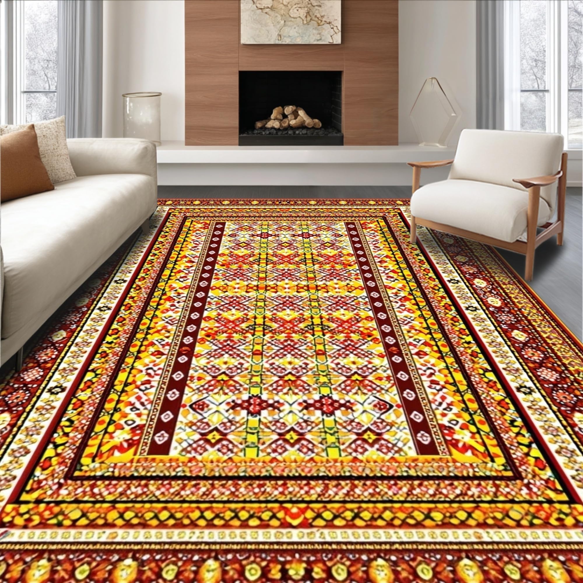 Rustic Colorful Striped Decor(Ivory)