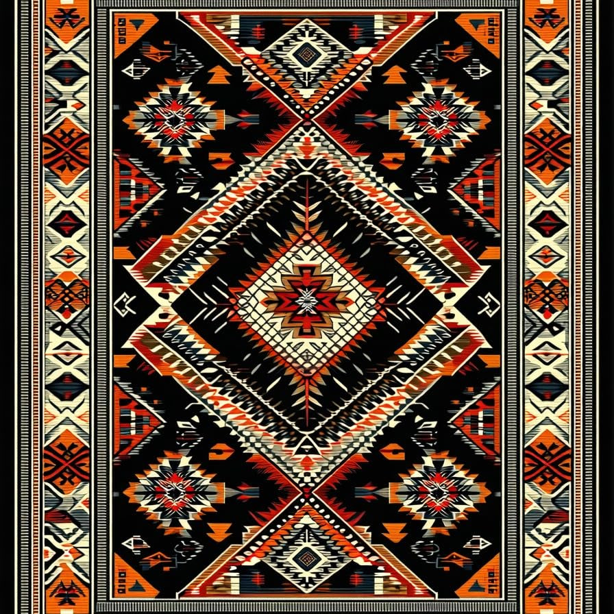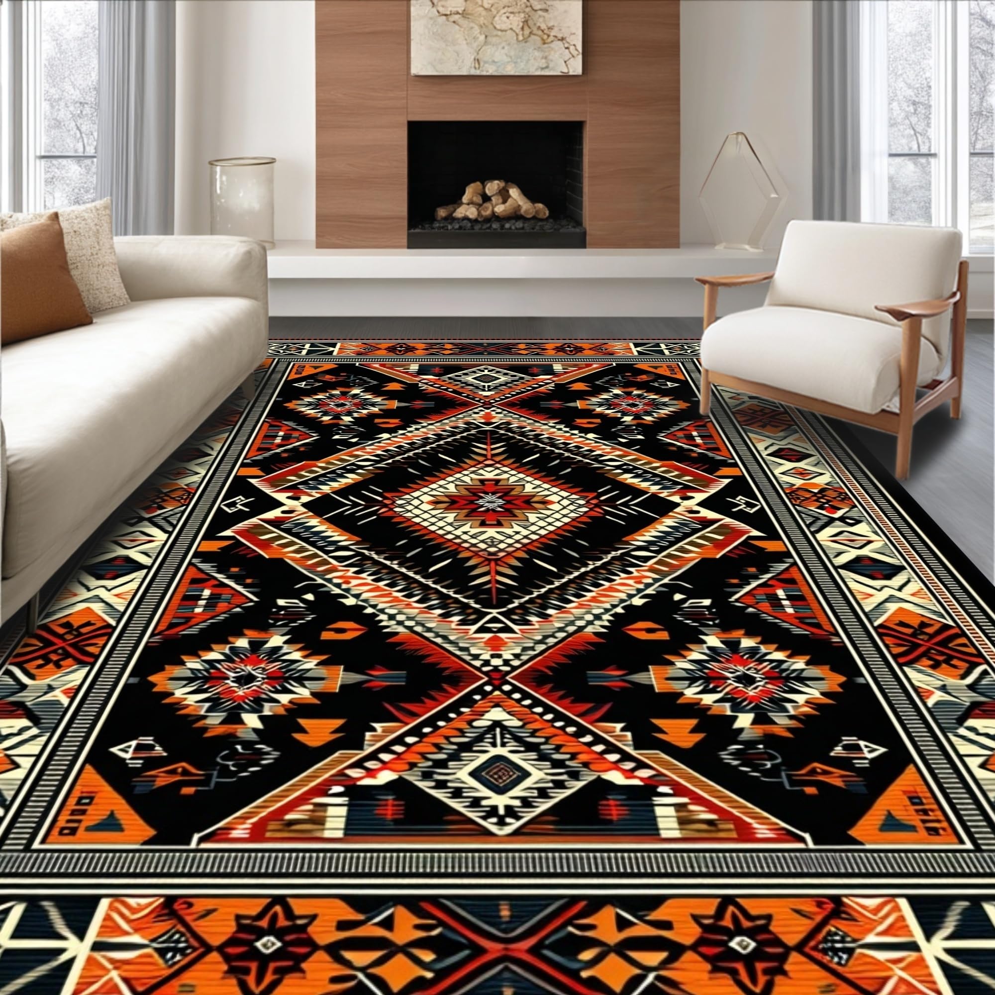 Rustic Harvest Rug with Interlaced Diamond and Zigzag Patterns(Orange)