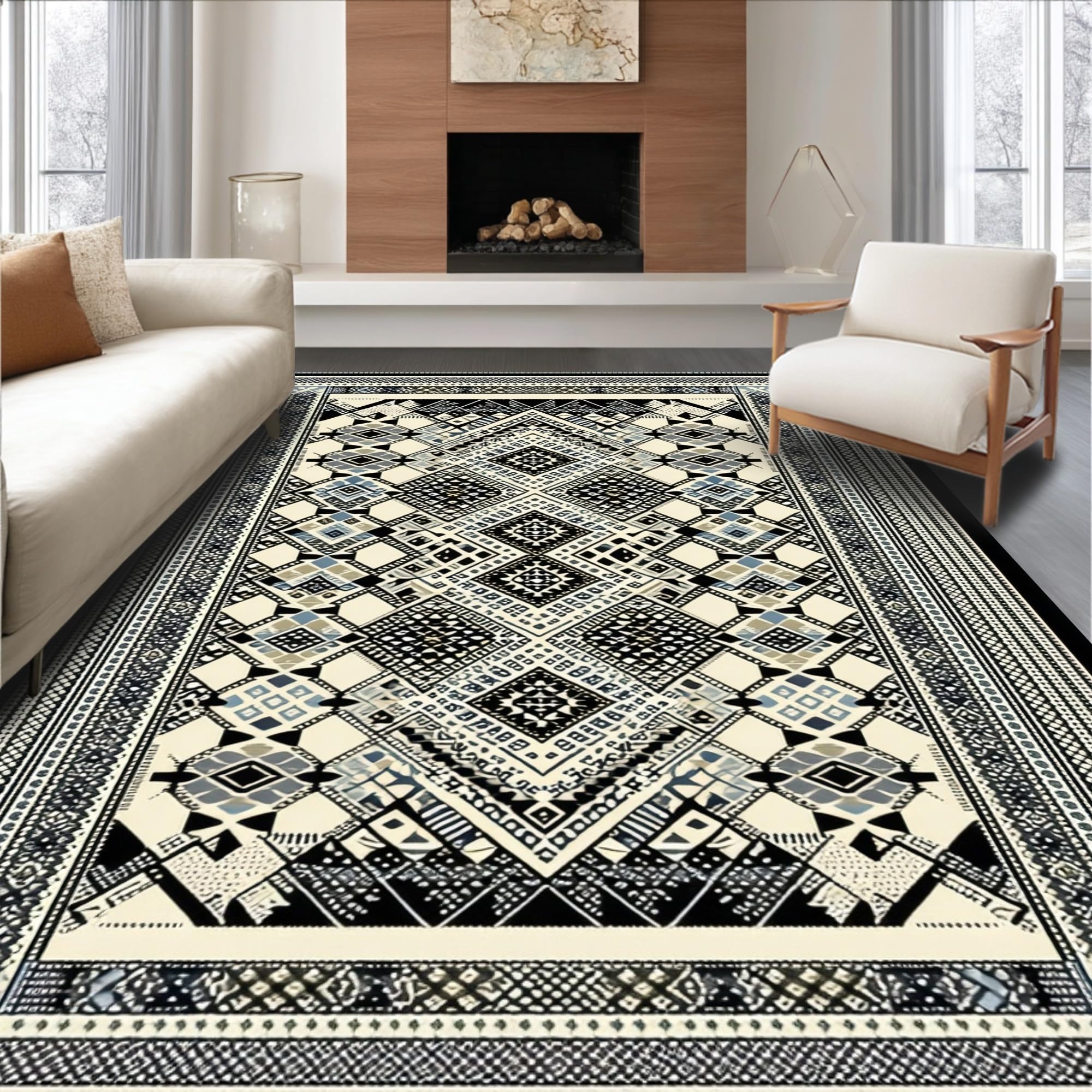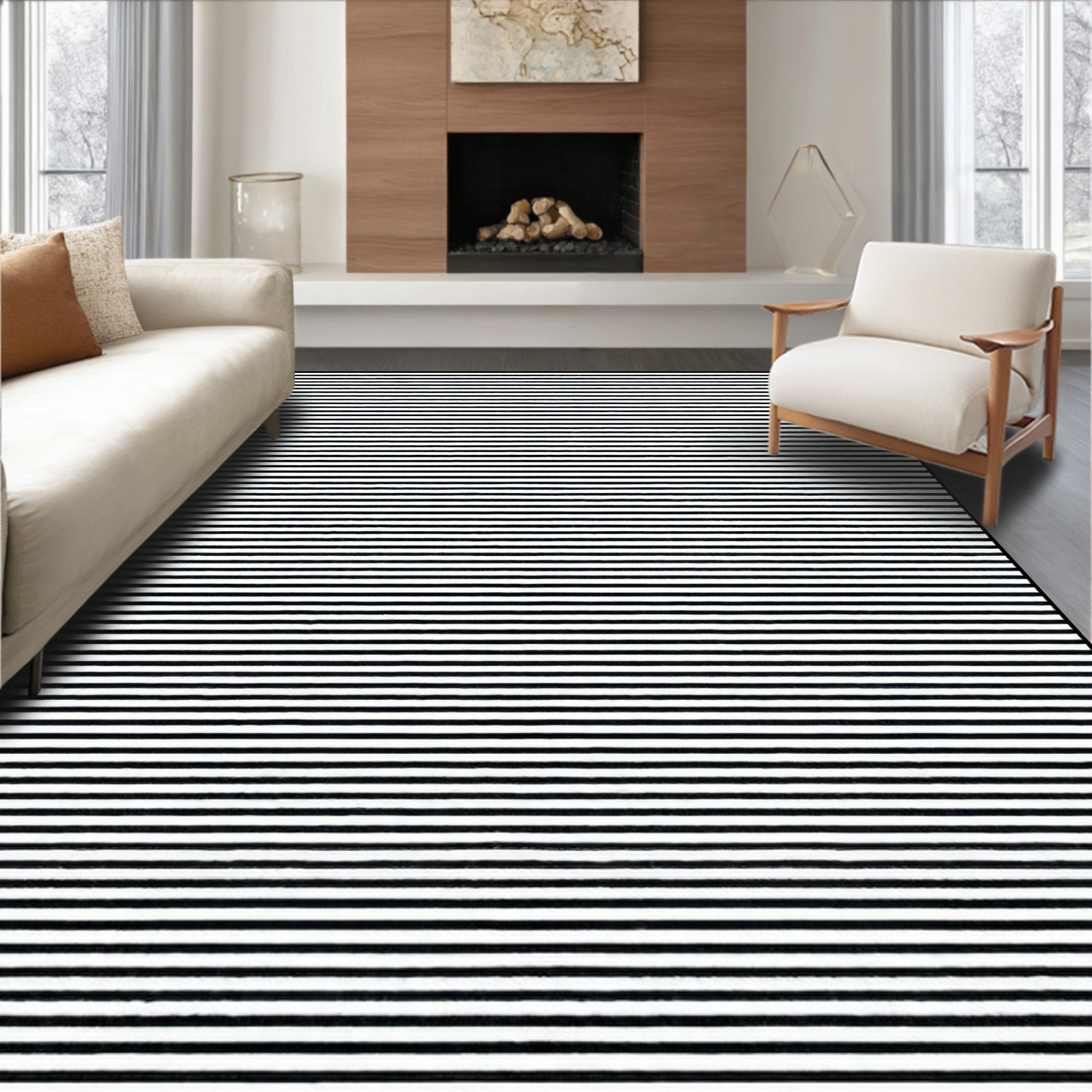 Elegant Black and White Striped Rug for Indoor and Use(Black)