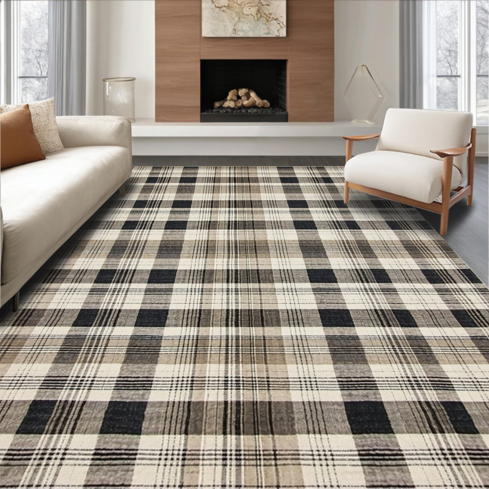 Twilight Plaid Carpet Tan & Charcoal Front Door(Beige)