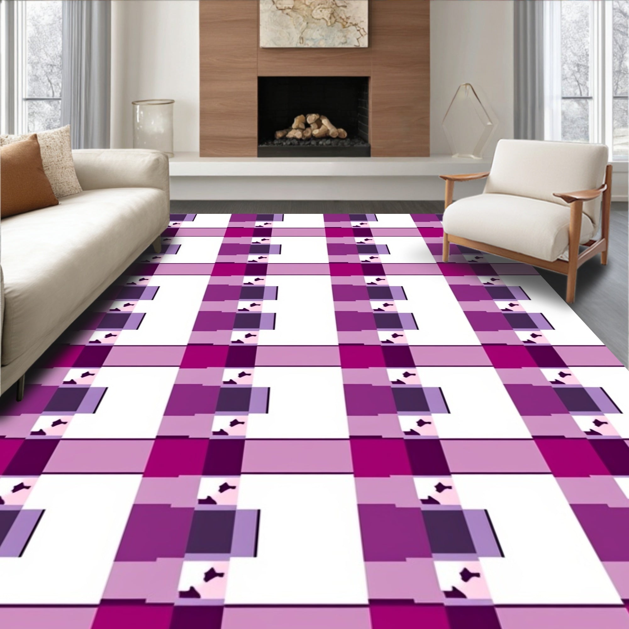 Vibrant Interlocking Checks with Bold Contrast and Retro Flair (Purple)