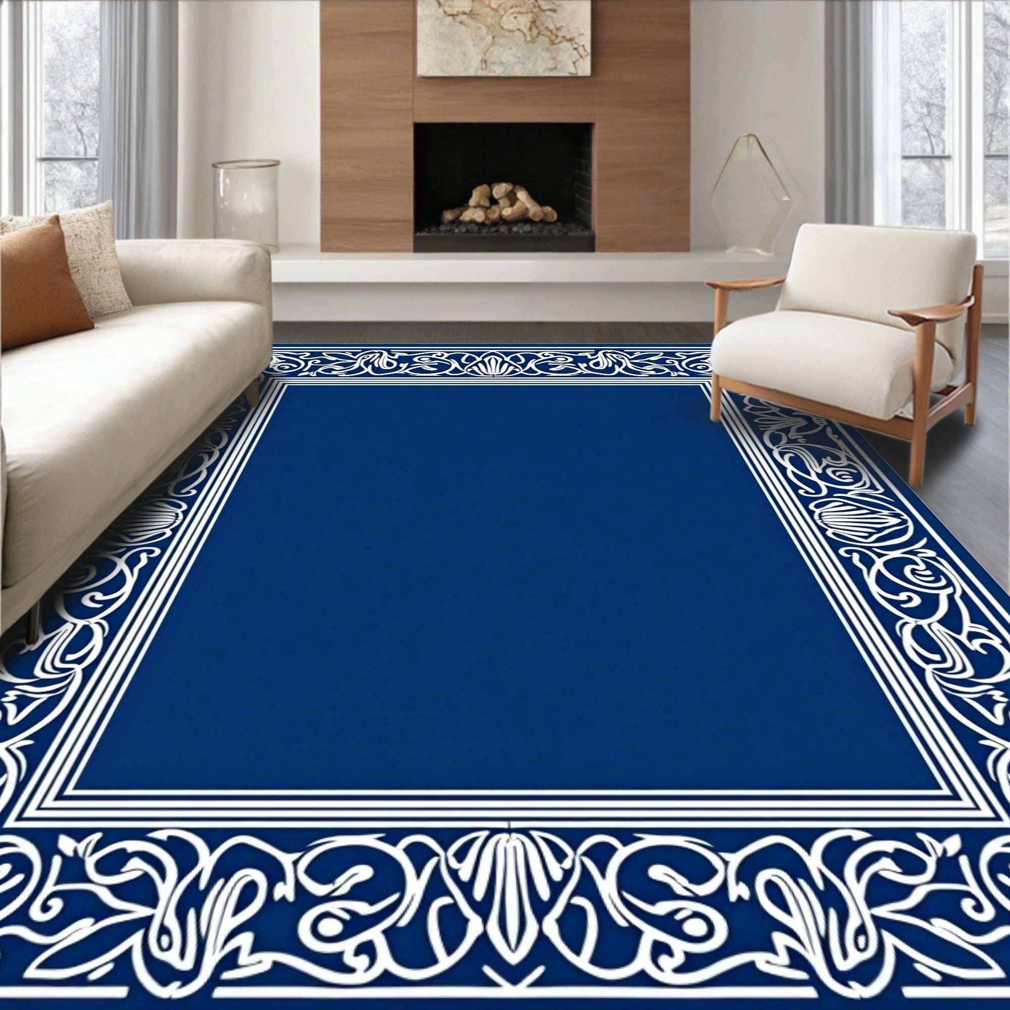 Botanical Scrollwork with Intricate Interlocking Borders (Blue)