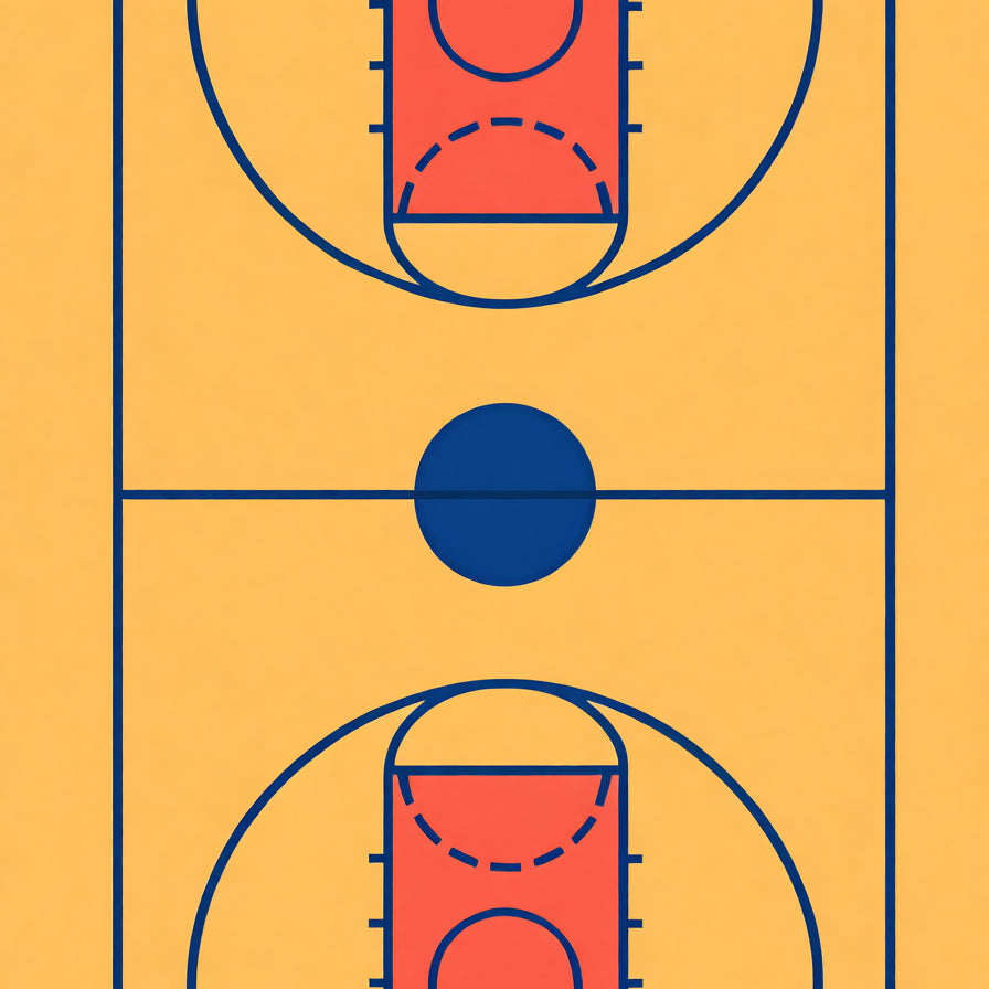 Basketball Court Yellow Floor Coral Key Blue Lines Blue Circle(Gold)