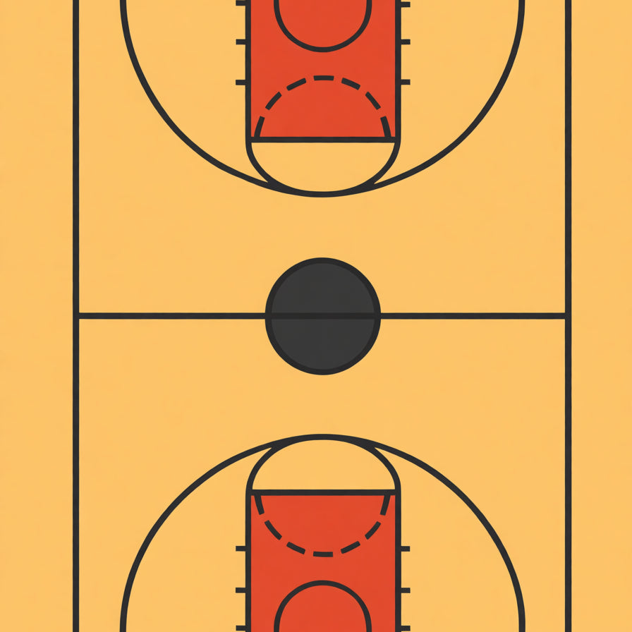 Basketball Court Yellow Floor Red Key Black Lines Black Circle(Beige)