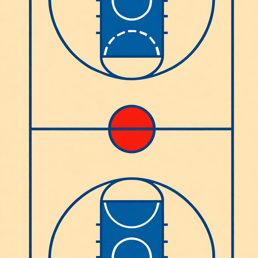 Basketball Court Beige Floor Blue Key Blue Lines Red Circle(Beige)