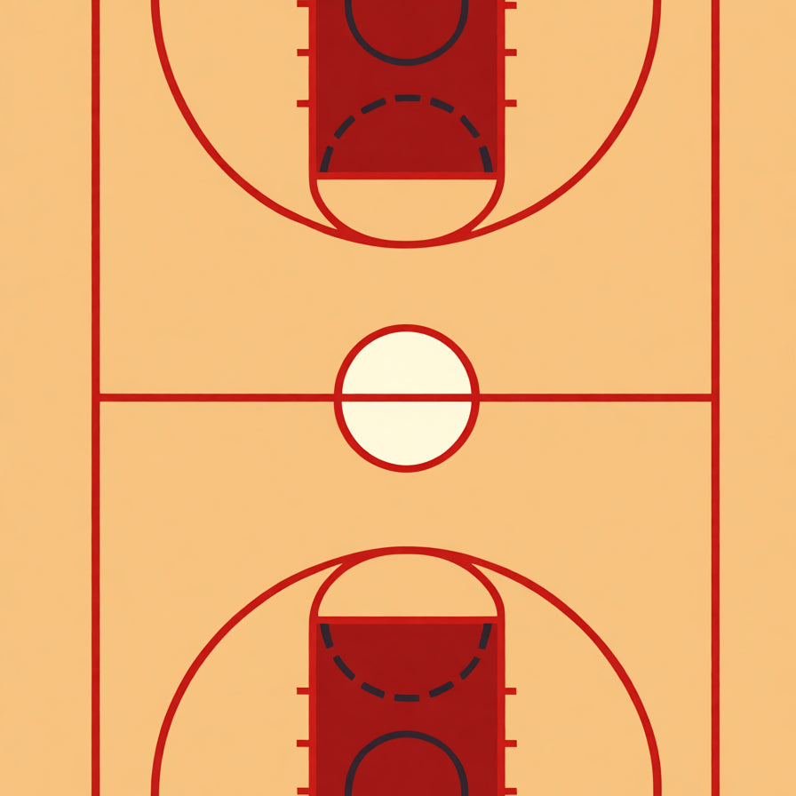 Basketball Court Wood Floor Maroon Key Red Lines Cream Circle(Beige)