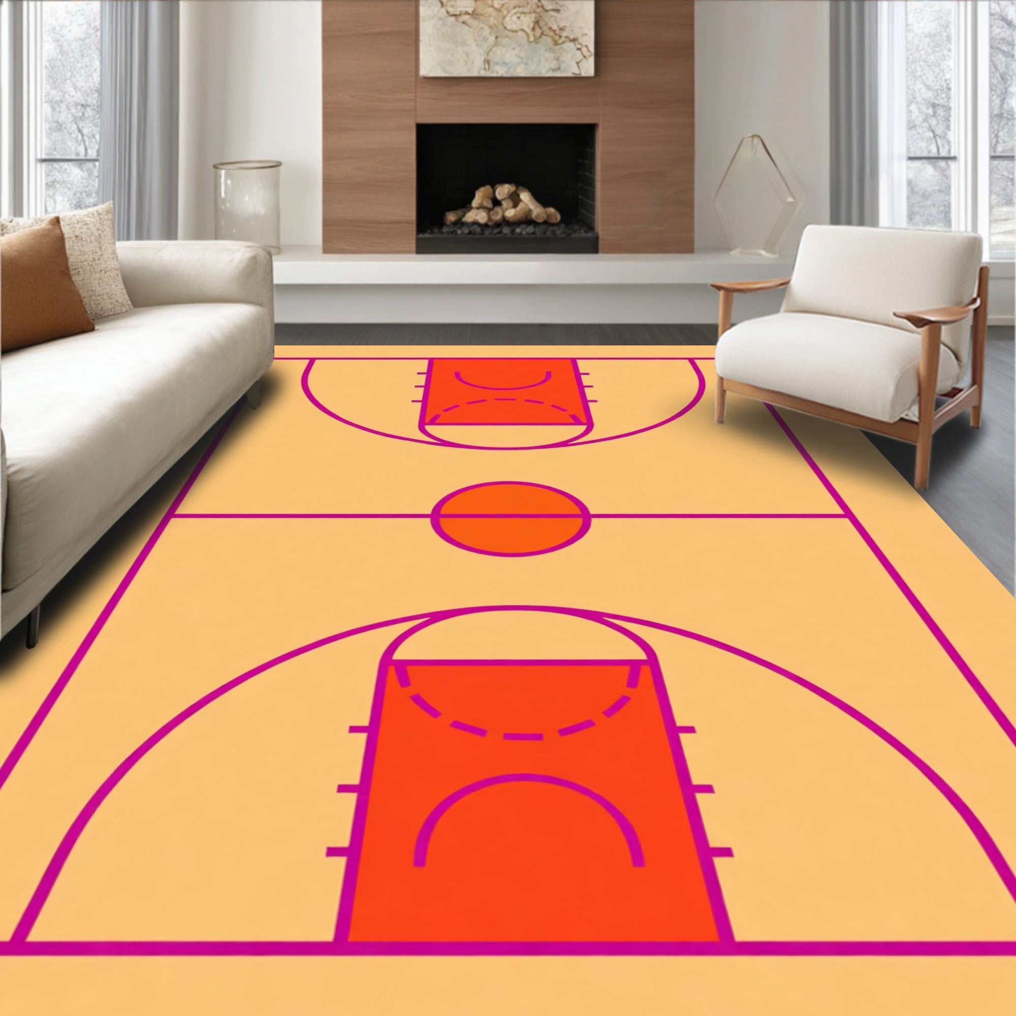 Basketball Court Wood Floor Red Orange Key Pink Lines(Beige)