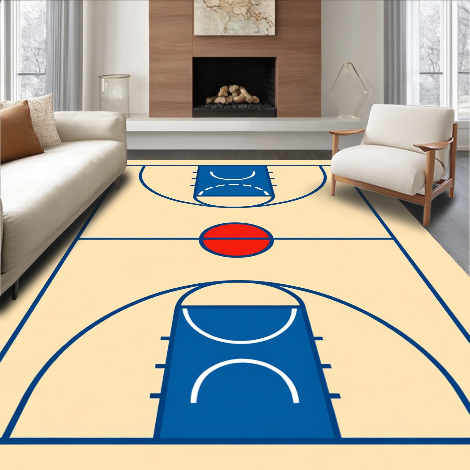 Basketball Court Beige Floor Navy Key Black Lines(Beige)