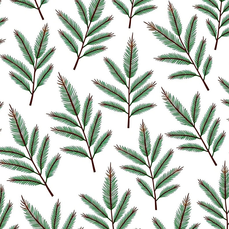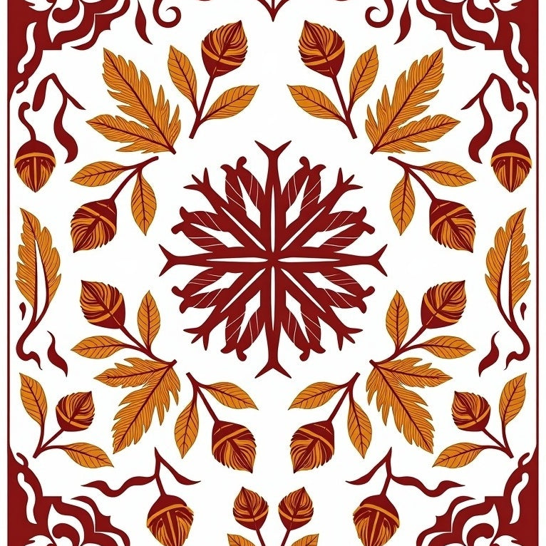 Festive Leaf Motif with Intricate Vine Swirls and Delicate Starbursts(White)
