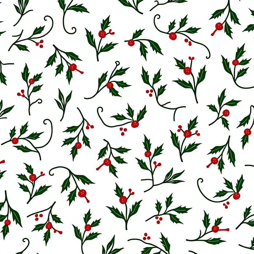 Festive Holly Berry Vine Holiday with Snowflake Accents(White)