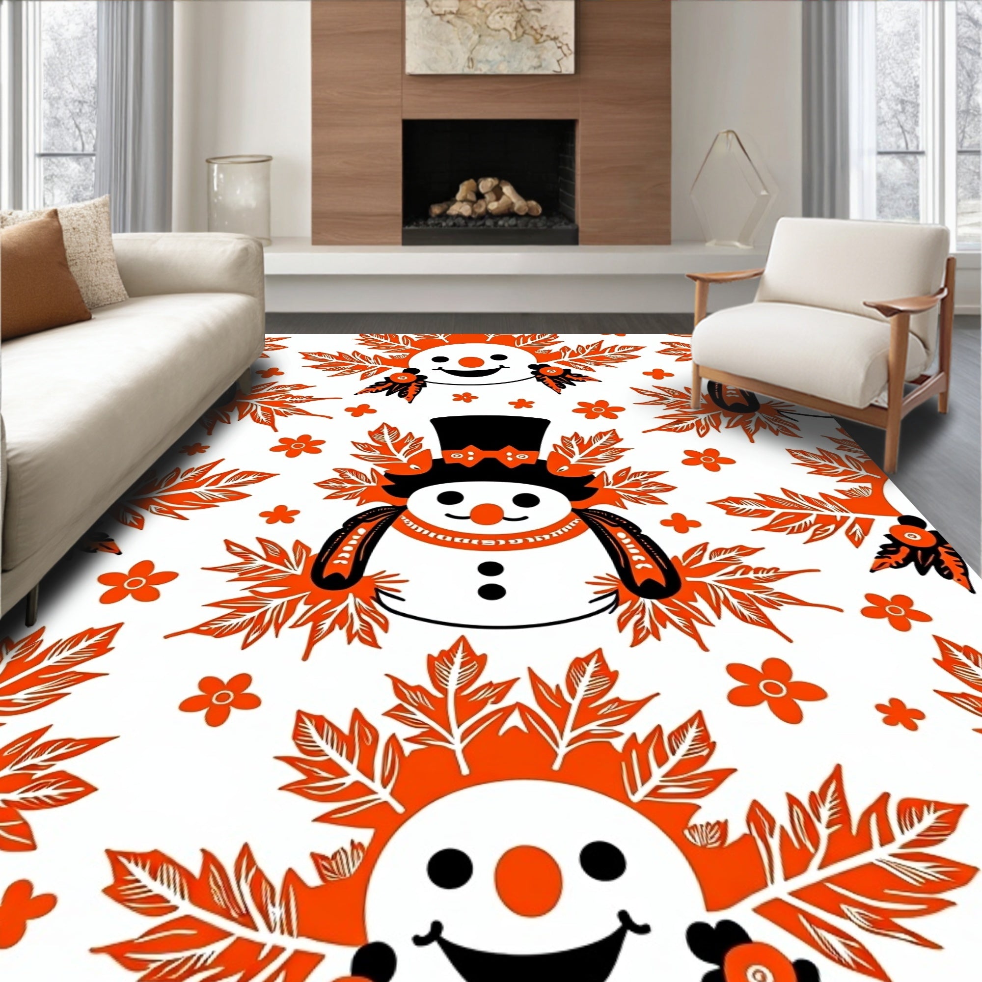 Whimsical Snowman Character with Festive Holly Border Design(White)