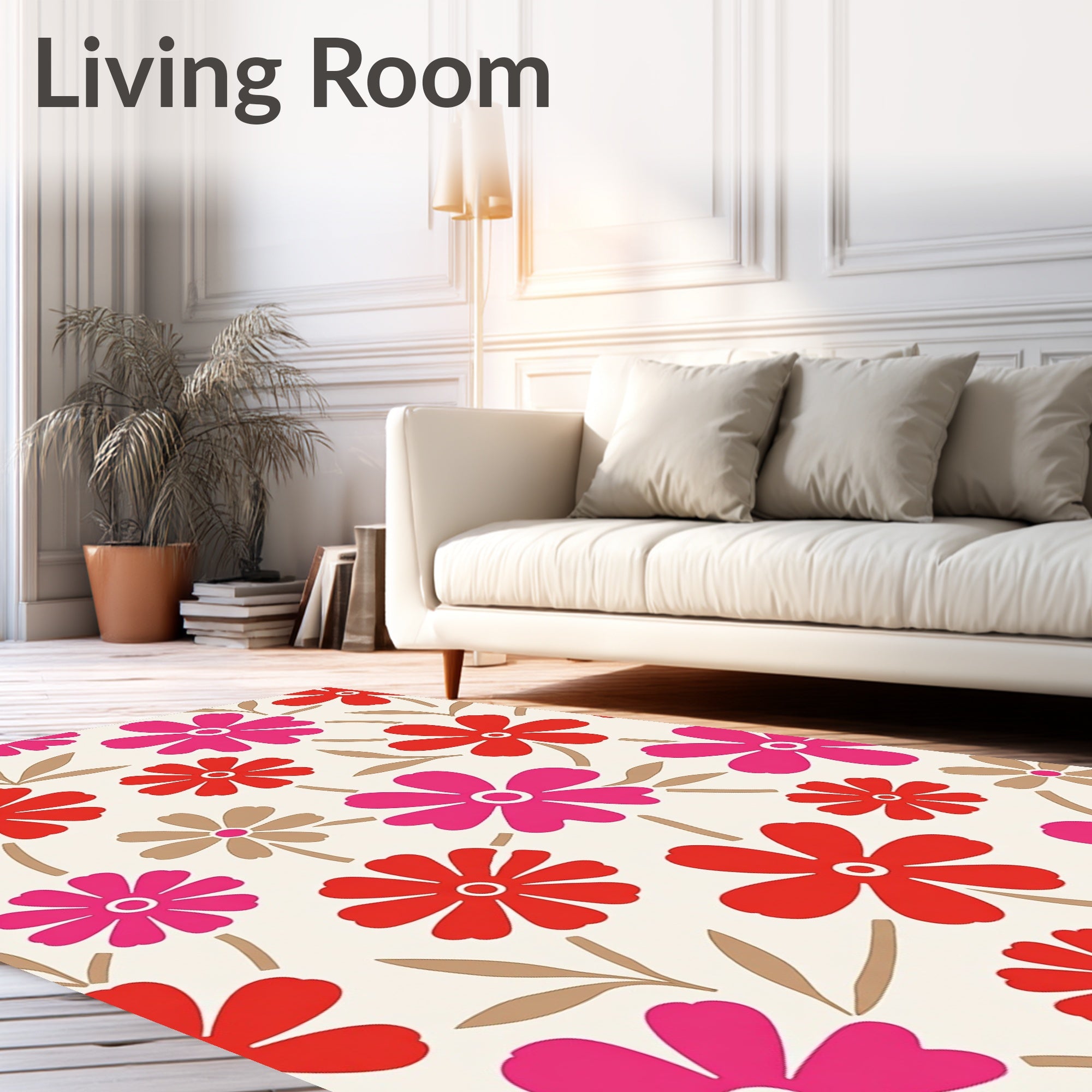 Flatwoven High Traffic Area Rug, Abstract Blossom Contemporary Artisan, Non Slip, Stain Resistant, Washable Area Rugs for Living Room, Bedroom (Red) Overview: