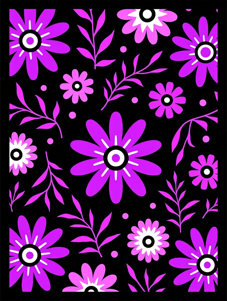 Abstract Boho Flora with Stylized Motif Arrangement (Purple)