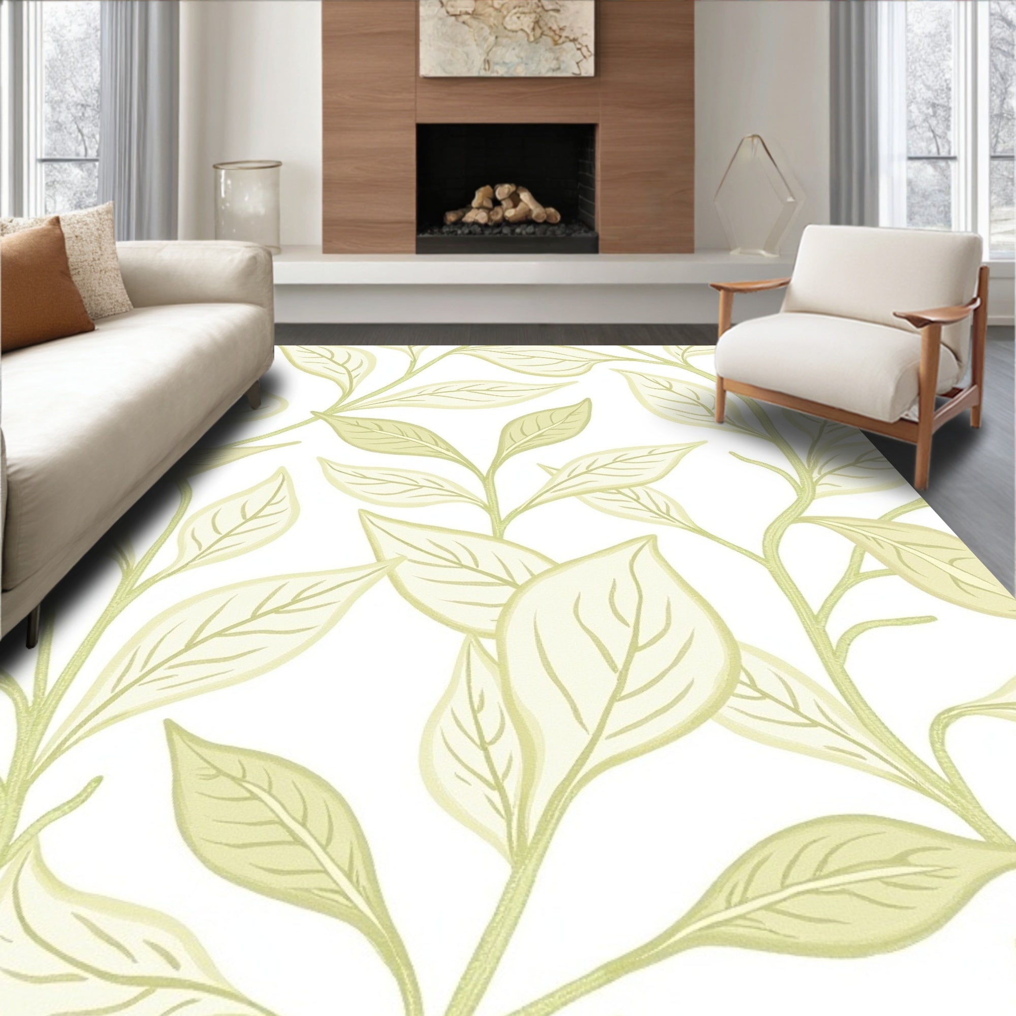 Flatwoven High Traffic Area Rug, Abstract Botanical Featuring Shapes, Non Slip, Stain Resistant, Washable Area Rugs for Living Room, Bedroom (Beige) Overview:
