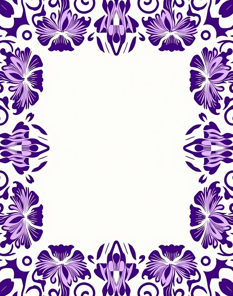 Abstract Botanical Motifs with Layered Petals and Twisting Vines (Purple)
