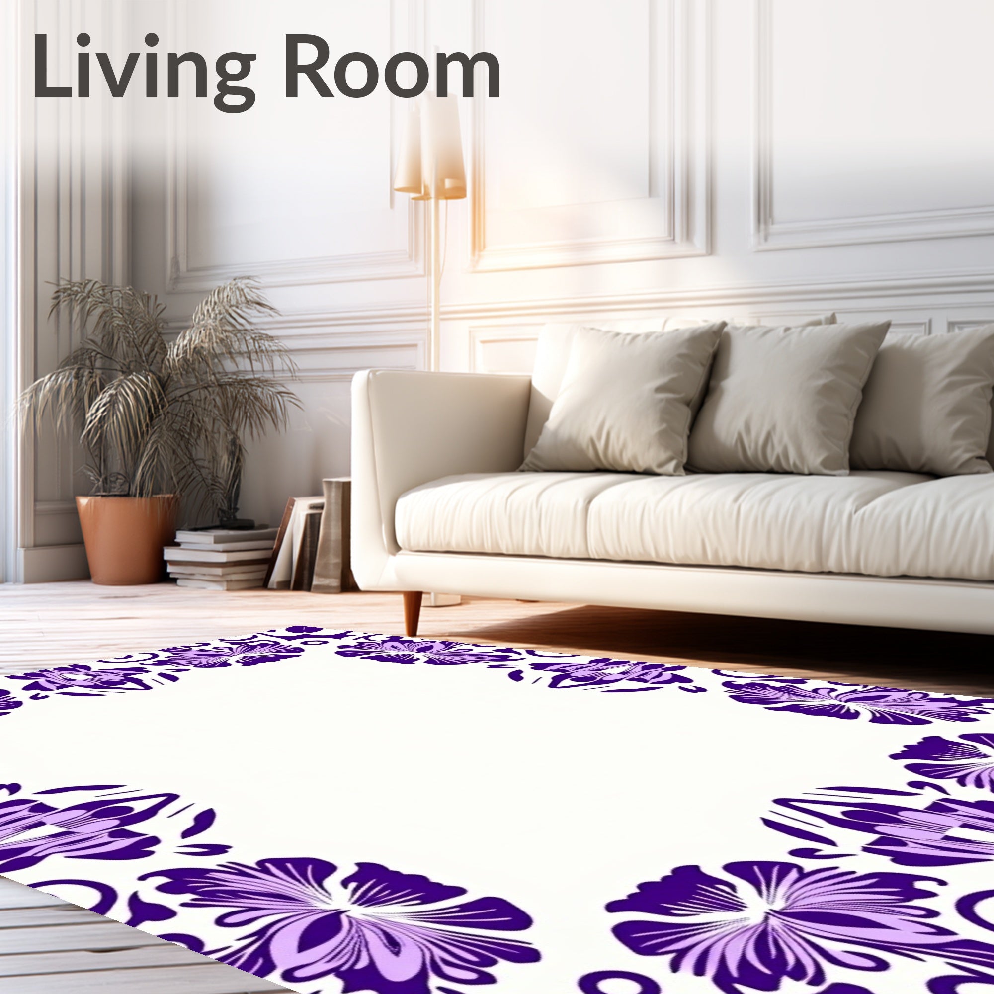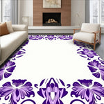 Flatwoven High Traffic Area Rug, Abstract Botanical Motifs with Layered Petals and Twisting Vines, Non Slip, Stain Resistant, Washable Area Rugs for Living Room, Bedroom (Purple) Overview: