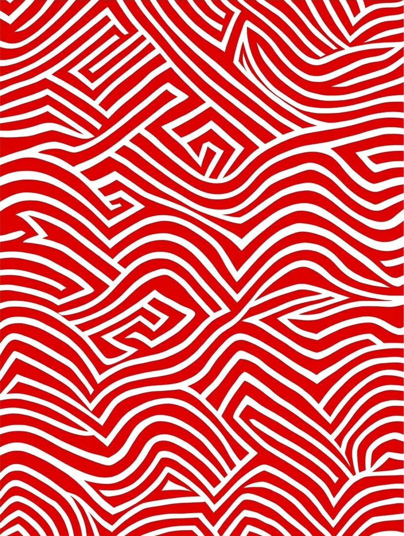Abstract Chevron Waves Combined with Delicate Crosshatch Motifs (Red)