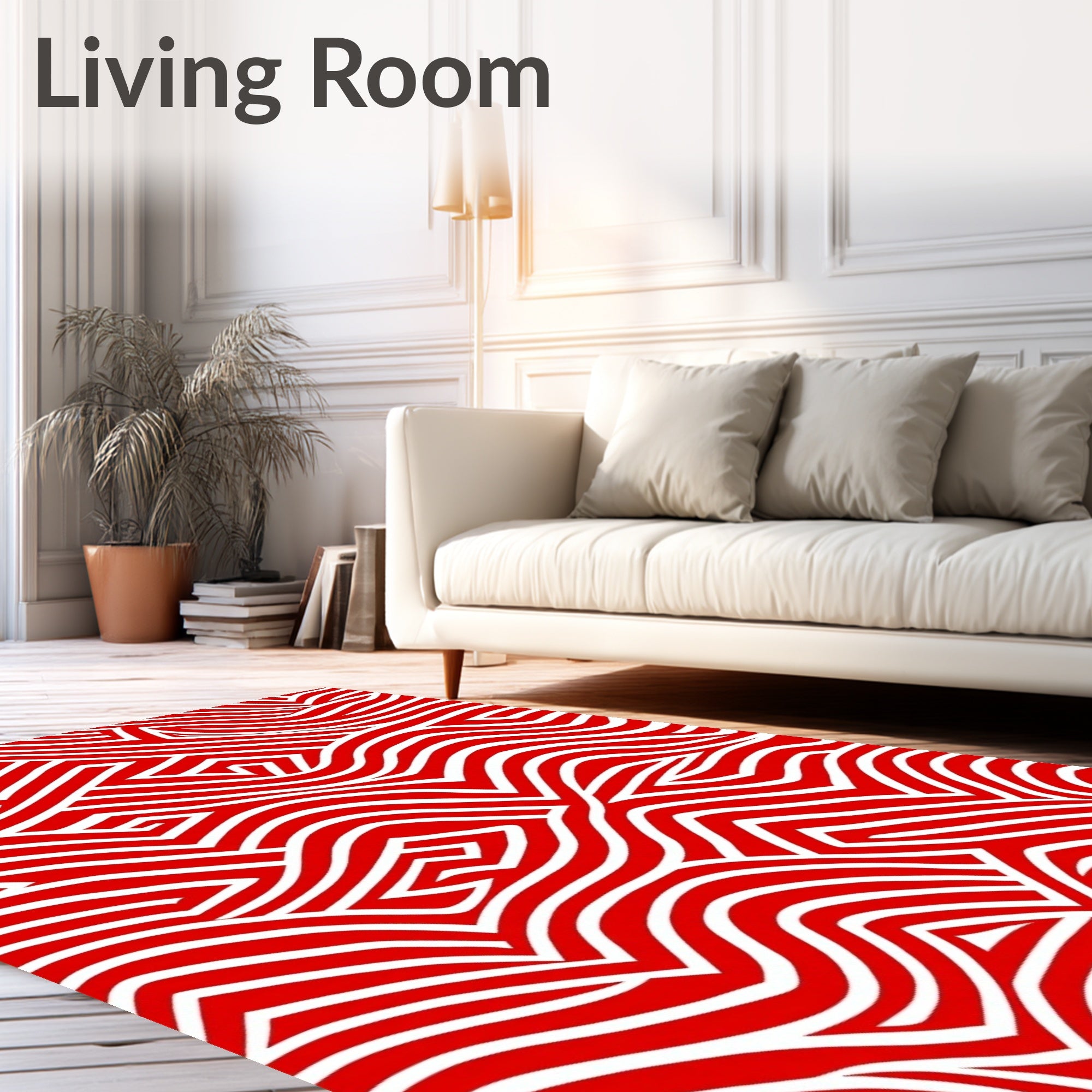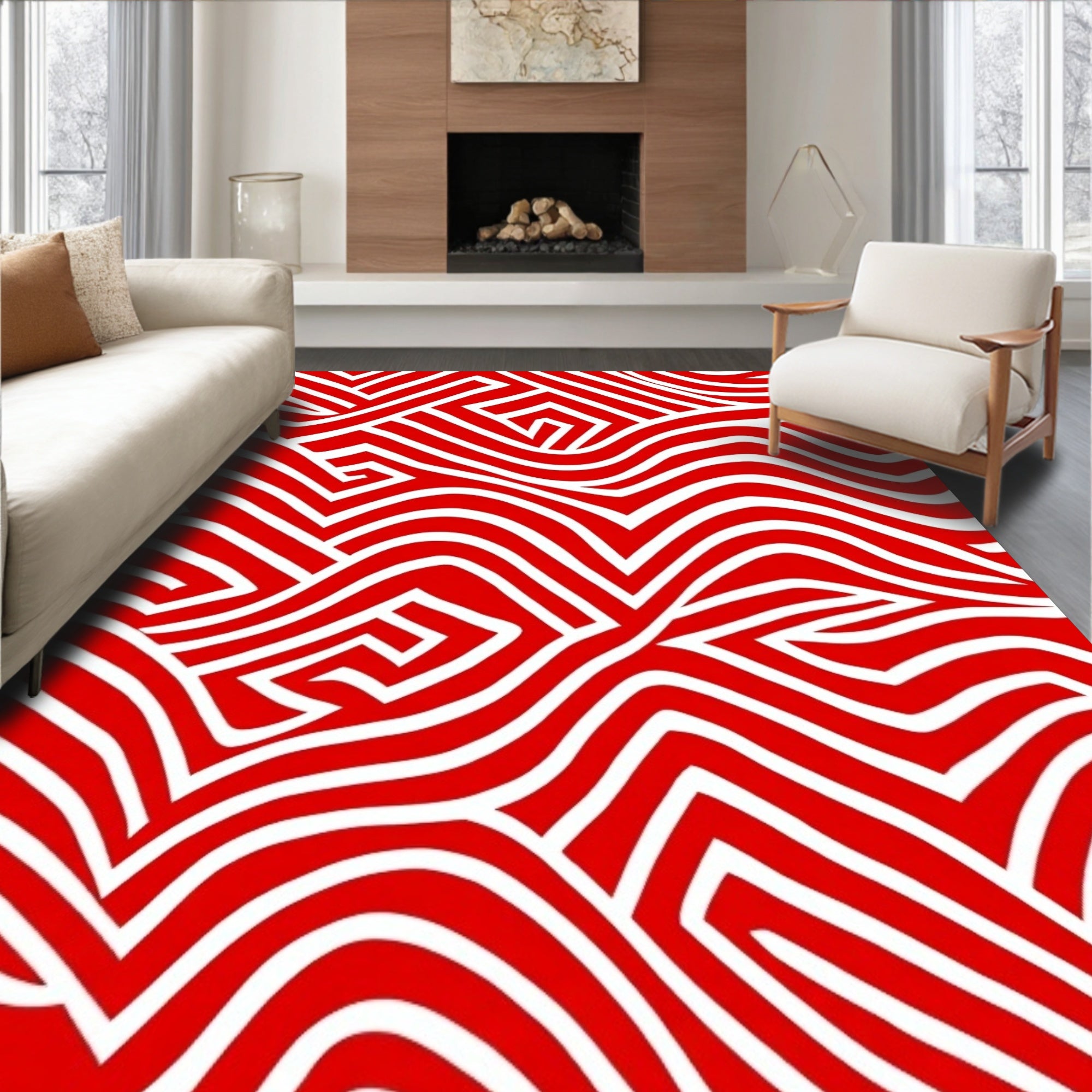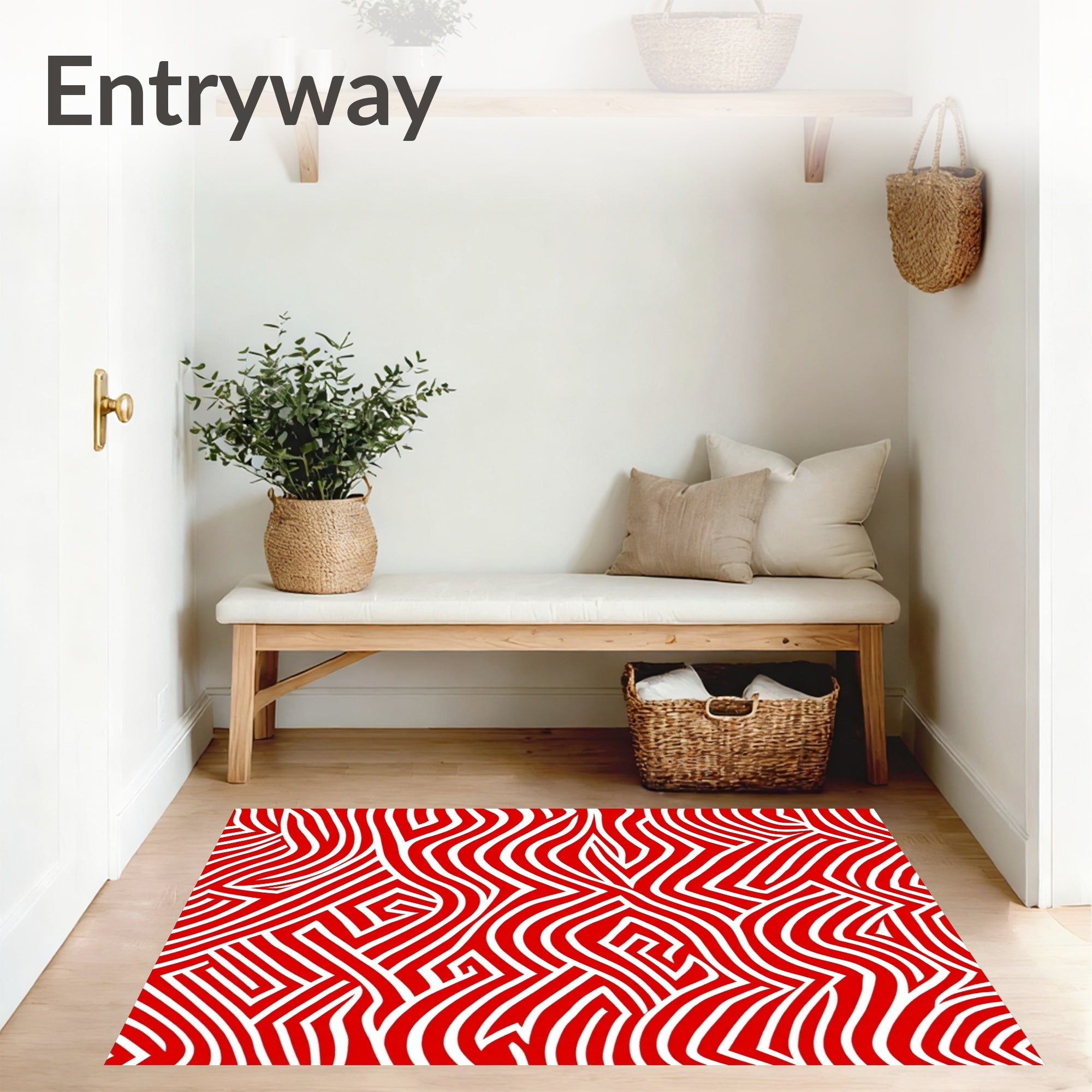 Flatwoven High Traffic Area Rug, Abstract Chevron Waves Combined with Delicate Crosshatch Motifs, Non Slip, Stain Resistant, Washable Area Rugs for Living Room, Bedroom (Red) Overview: