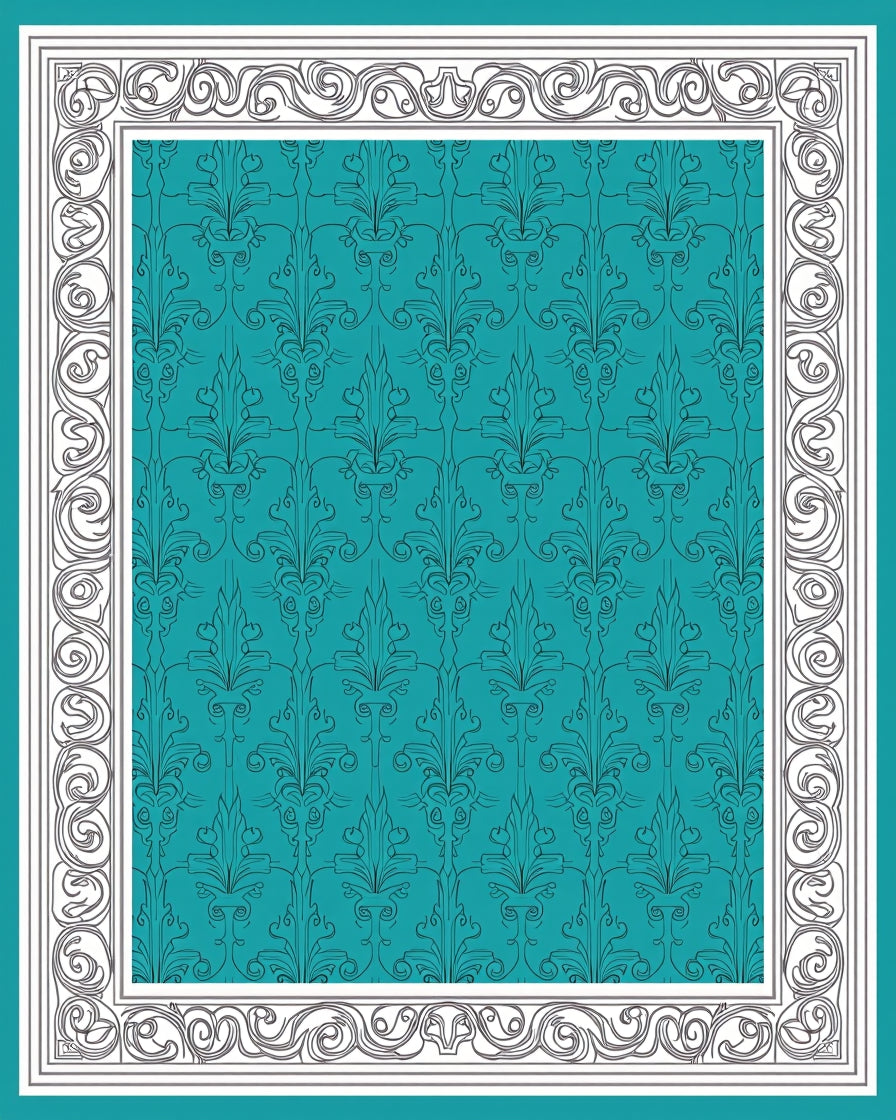 Abstract Damask Border with Interlocking Ornamental Swirl Design (Teal)