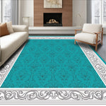 Flatwoven High Traffic Area Rug, Abstract Damask Border with Interlocking Ornamental Swirl Design, Non Slip, Stain Resistant, Washable Area Rugs for Living Room, Bedroom (Teal) Overview: