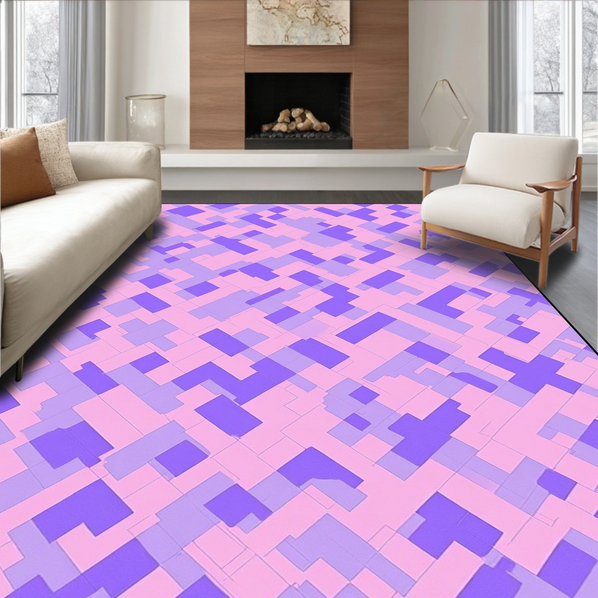 Flatwoven High Traffic Area Rug, Abstract Mosaic Featuring Lilac Swirls and Interlocking Shapes, Non Slip, Stain Resistant, Washable Area Rugs for Living Room, Bedroom (Pink) Overview: