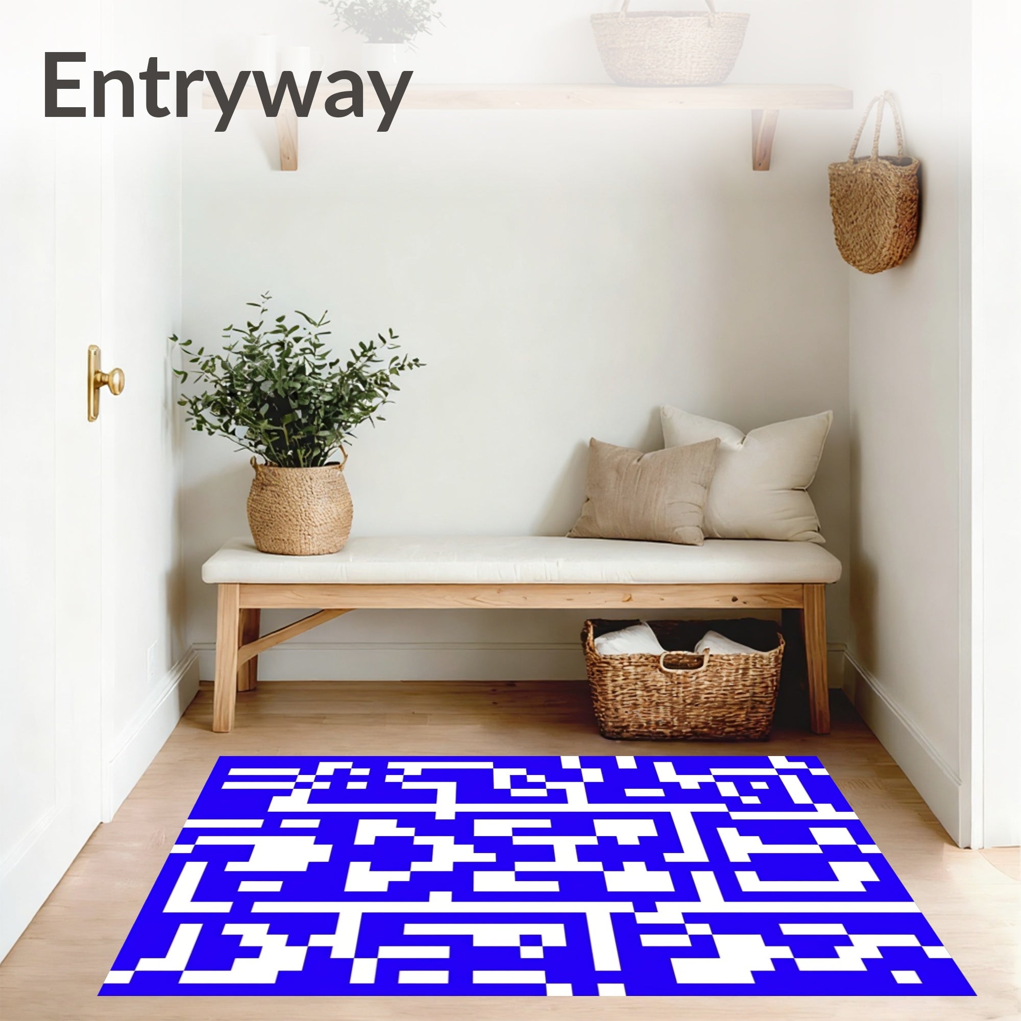 Flatwoven High Traffic Area Rug, Abstract Mosaic Tiles with Alternating Color Blocks, Non Slip, Stain Resistant, Washable Area Rugs for Living Room, Bedroom (Blue) Overview: