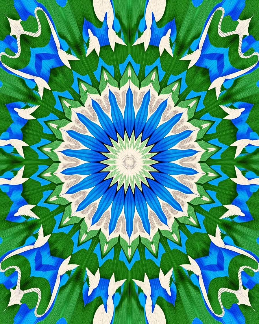 Abstract Starburst Design With Radiating Interlocking (Green)