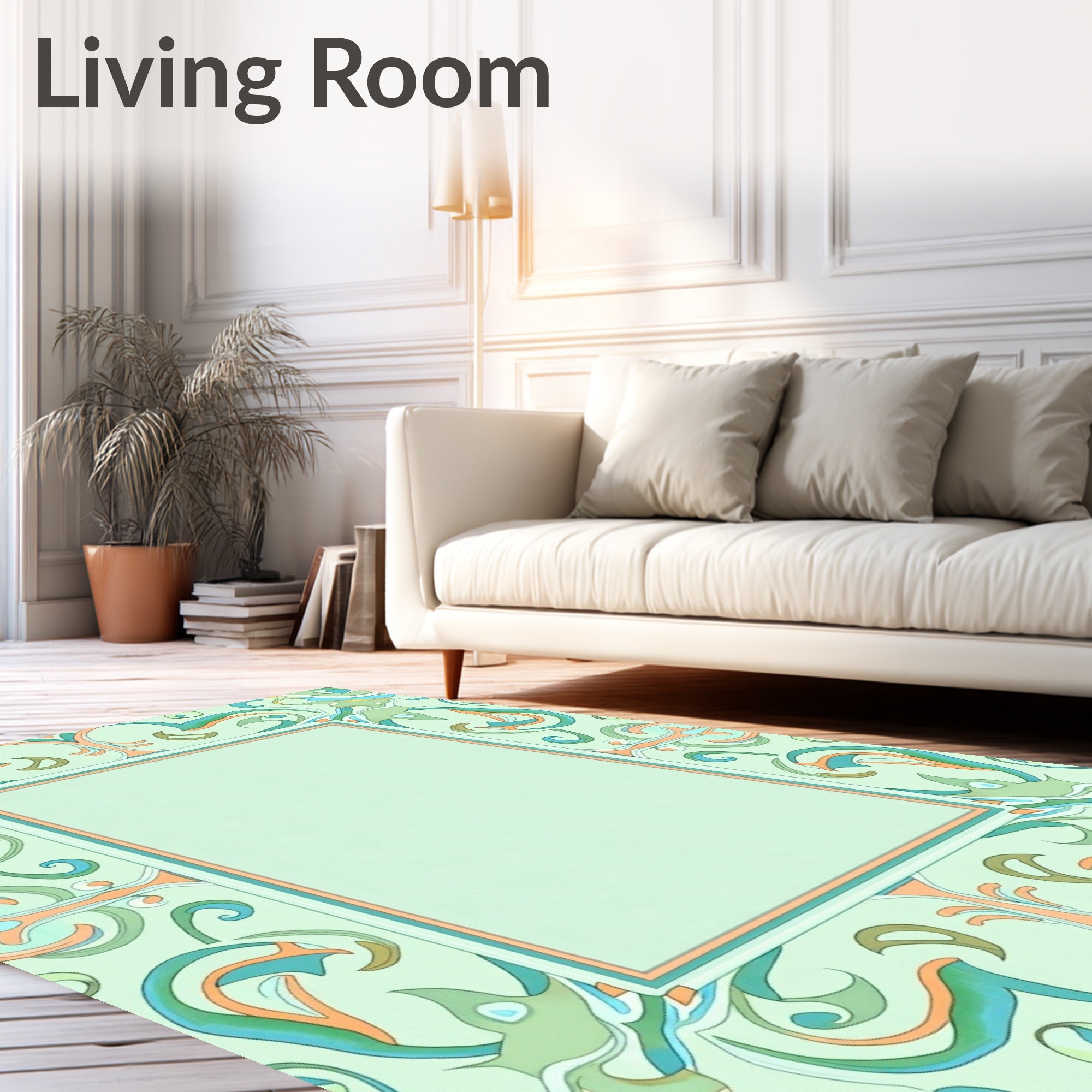 Flatwoven High Traffic Area Rug, Abstract Swirl Botanical Medallion Contemporary Elegant, Non Slip, Stain Resistant, Washable Area Rugs for Living Room, Bedroom (Green) Overview:
