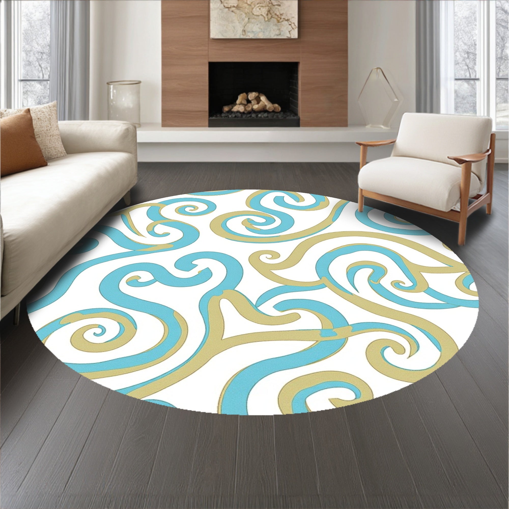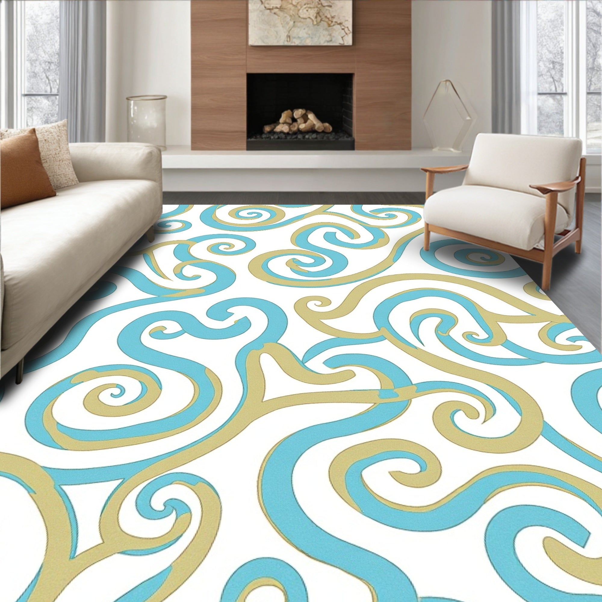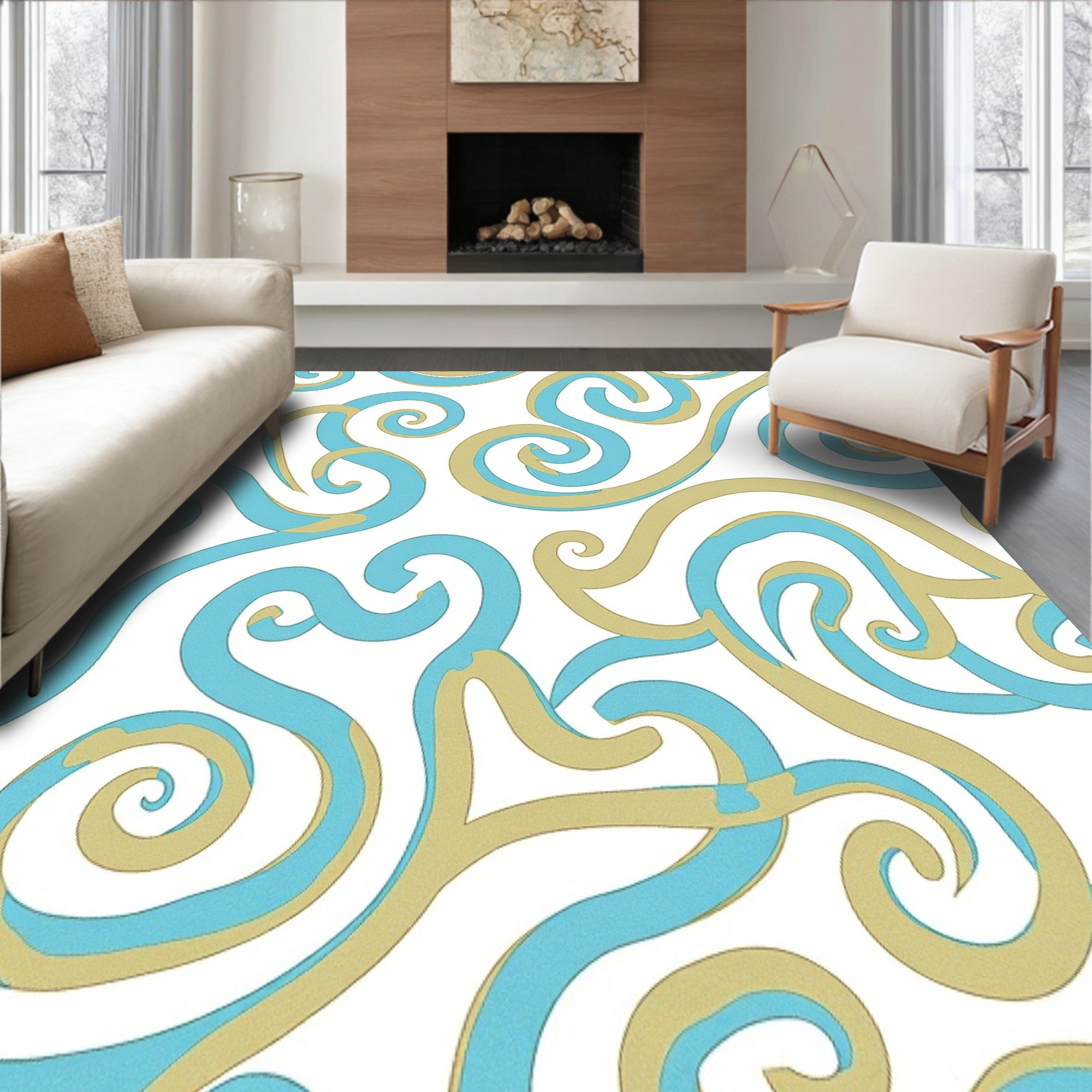 Flatwoven High Traffic Area Rug, Abstract Waterfall Cascade Swirl Waves Symphony Ribbon Flow, Non Slip, Stain Resistant, Washable Area Rugs for Living Room, Bedroom (Beige) Overview: