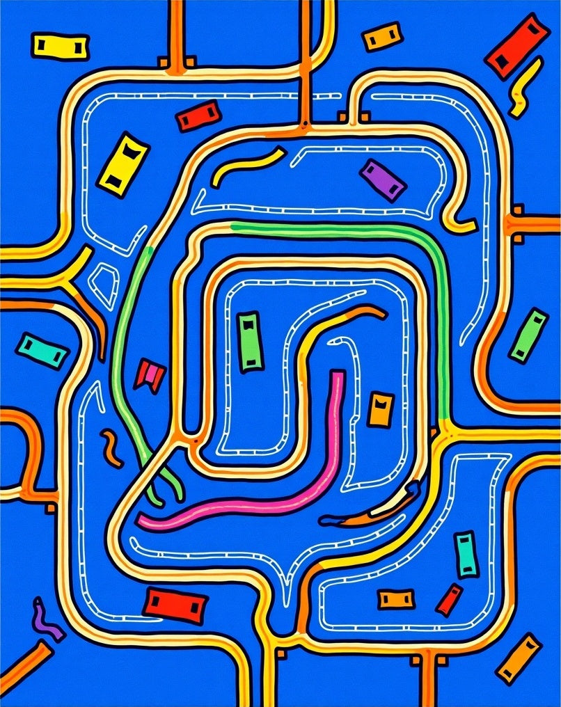 Adventure Highway Interlocking Maze with Playful Vehicles Motif (Blue)