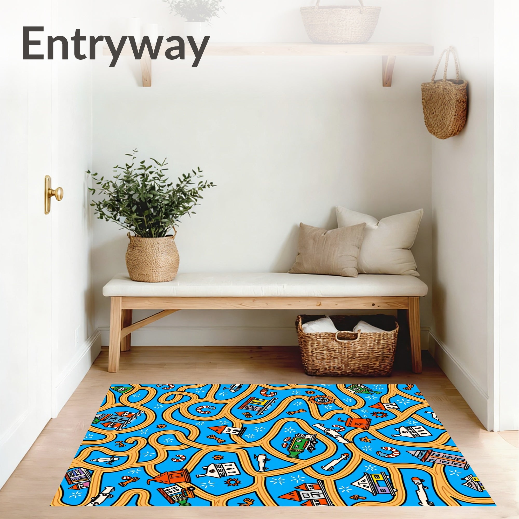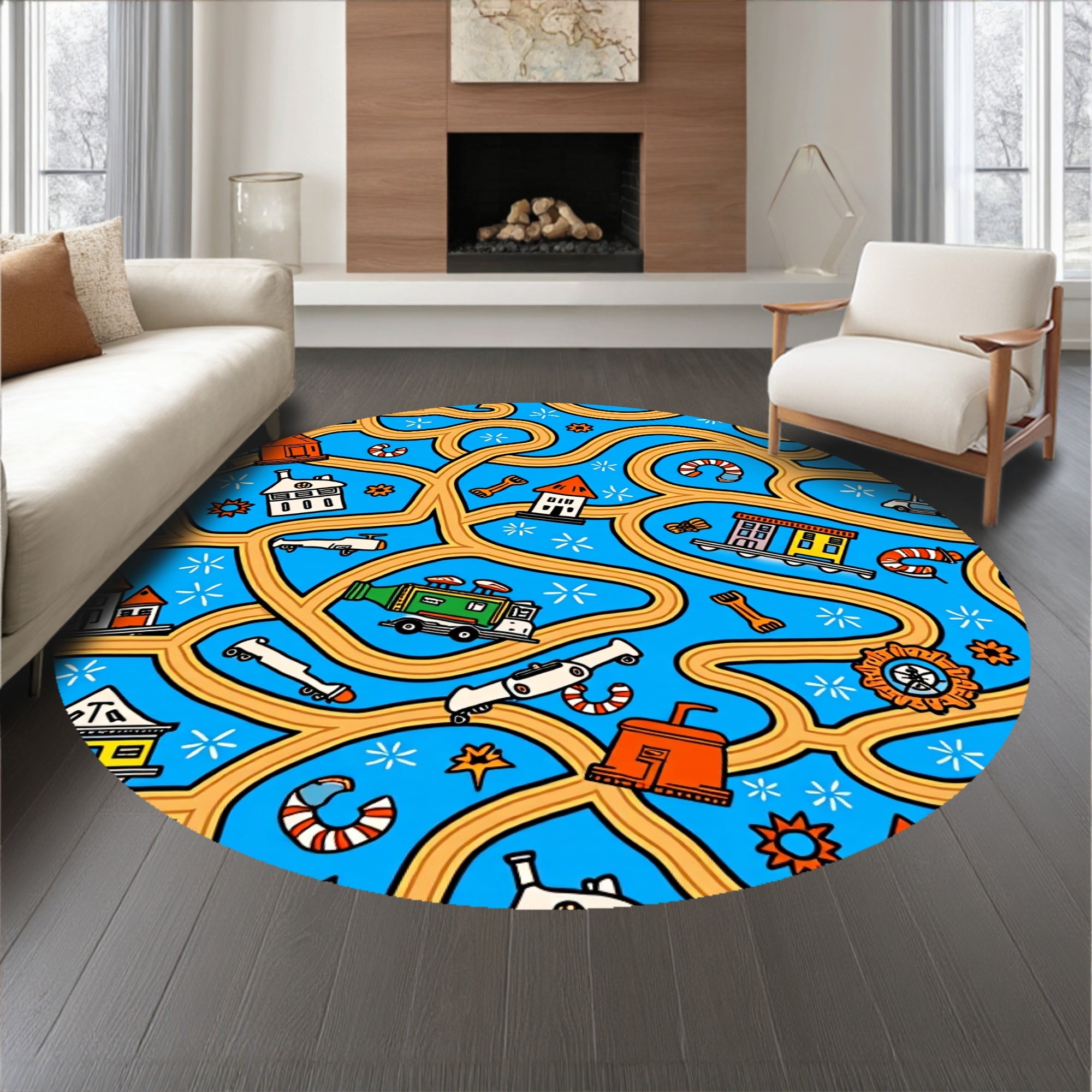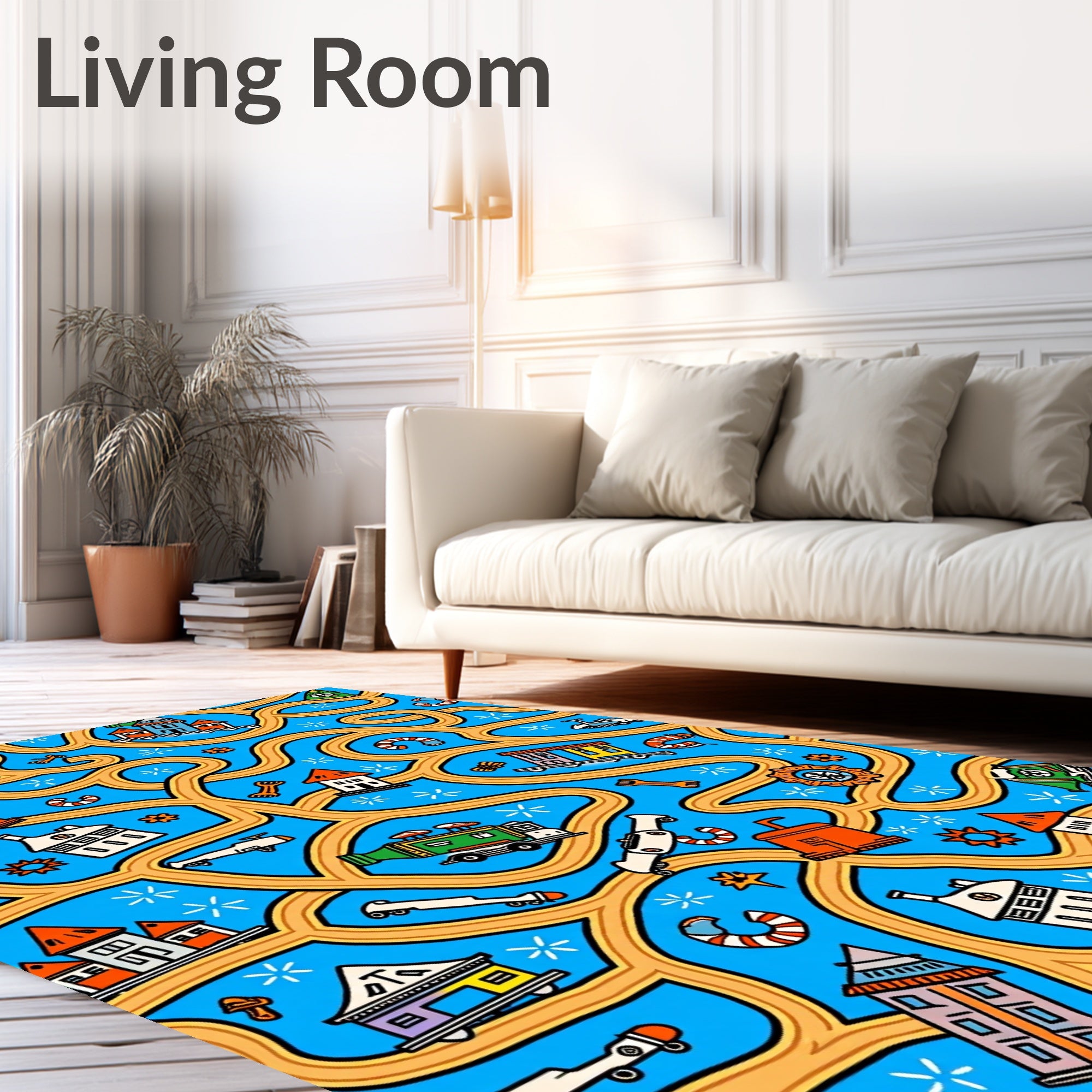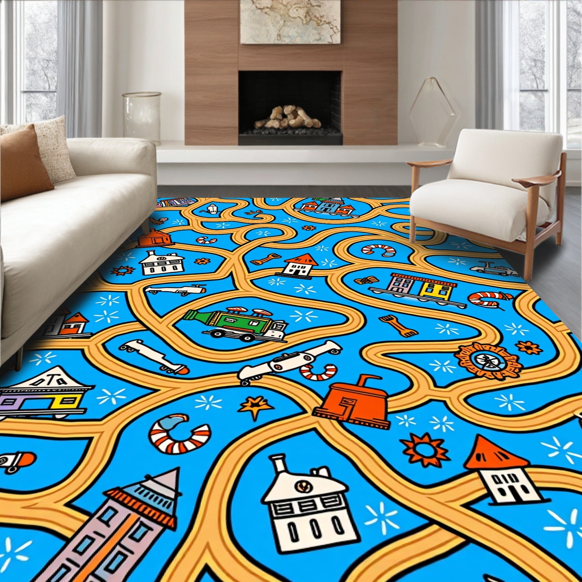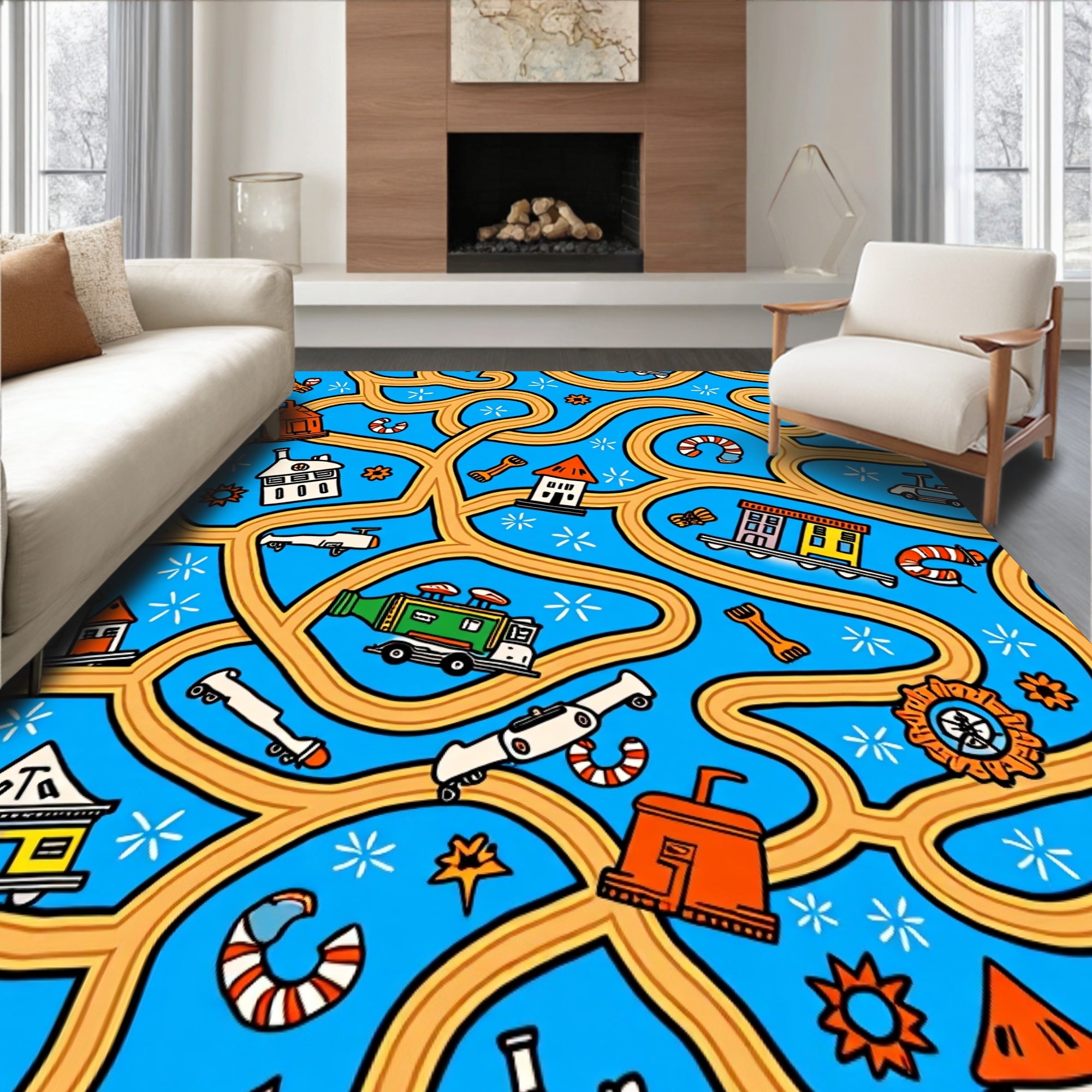 Flatwoven High Traffic Area Rug, Adventure Squad Highway Map Interactive Play, Non Slip, Stain Resistant, Washable Area Rugs for Living Room, Bedroom (Blue) Overview: