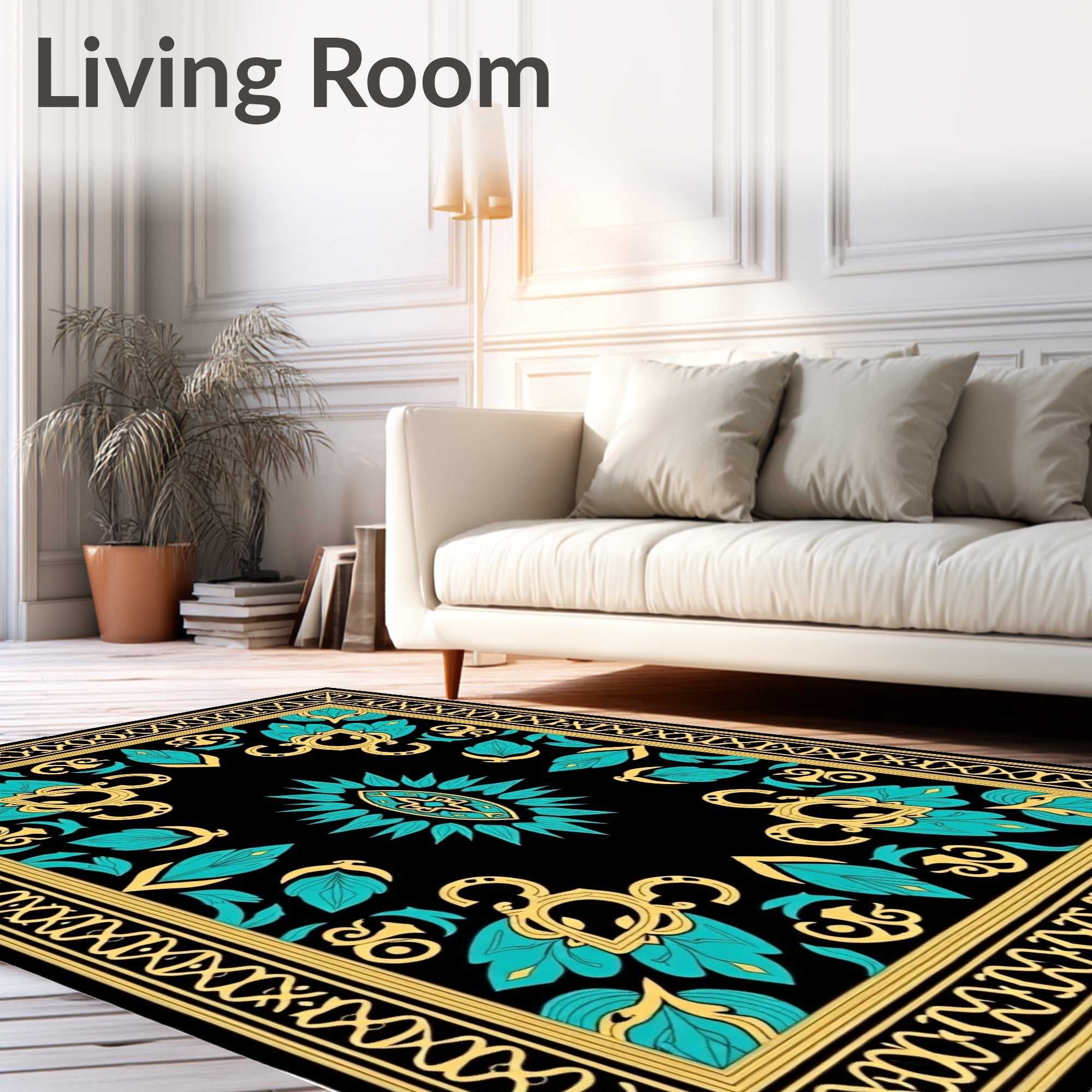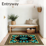 Flatwoven High Traffic Area Rug, Art Floral with Stylized Botanical, Non Slip, Stain Resistant, Washable Area Rugs for Living Room, Bedroom (Black) Overview: