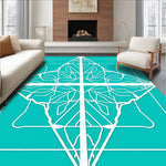Flatwoven High Traffic Area Rug, Art Inspired Fan with Contrasting Trim, Non Slip, Stain Resistant, Washable Area Rugs for Living Room, Bedroom (Blue) Overview: