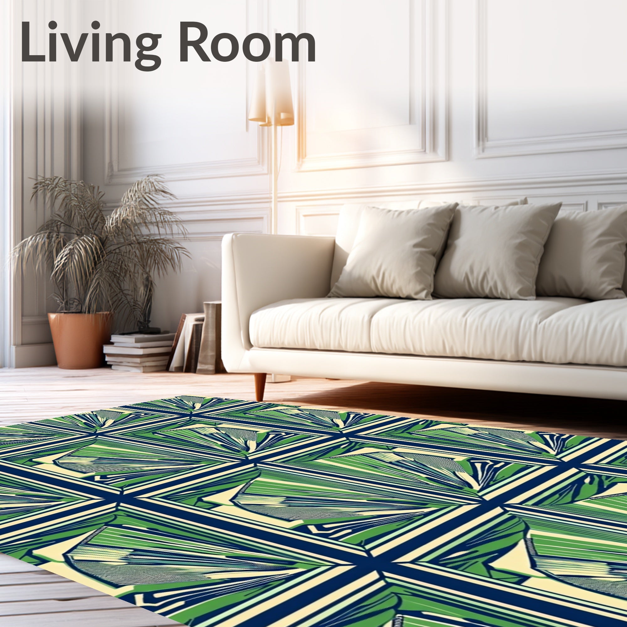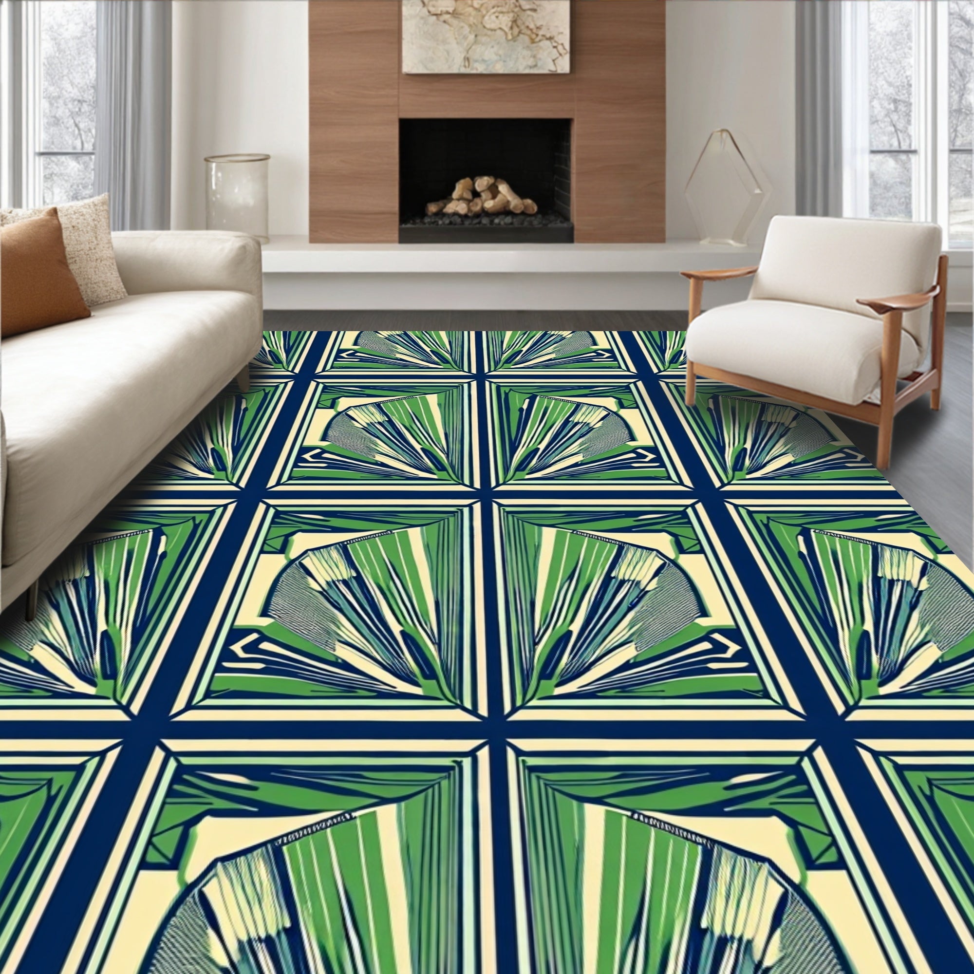 Flatwoven High Traffic Area Rug, Art Inspired Fan with Radiating Interlocking Segments, Non Slip, Stain Resistant, Washable Area Rugs for Living Room, Bedroom (Green) Overview:
