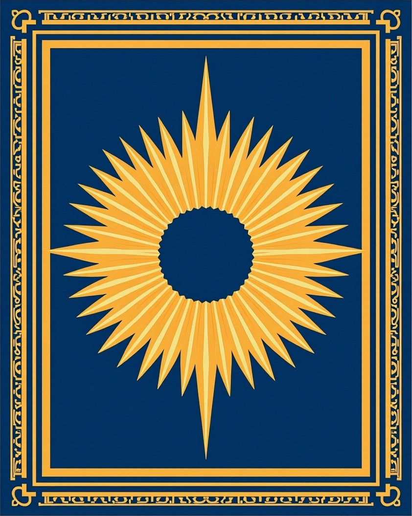 Art Inspired Sunburst with Radiant Gold and Deep Ochre Details (Blue)