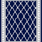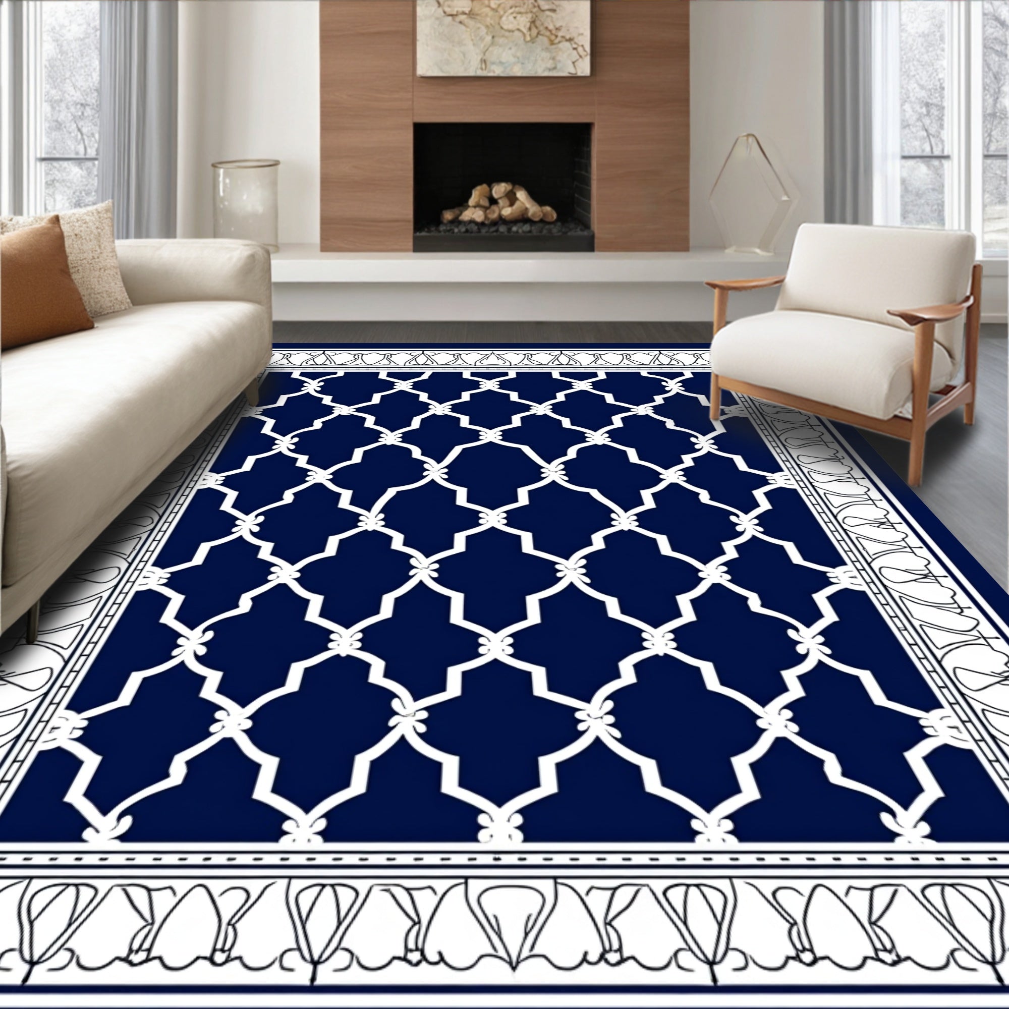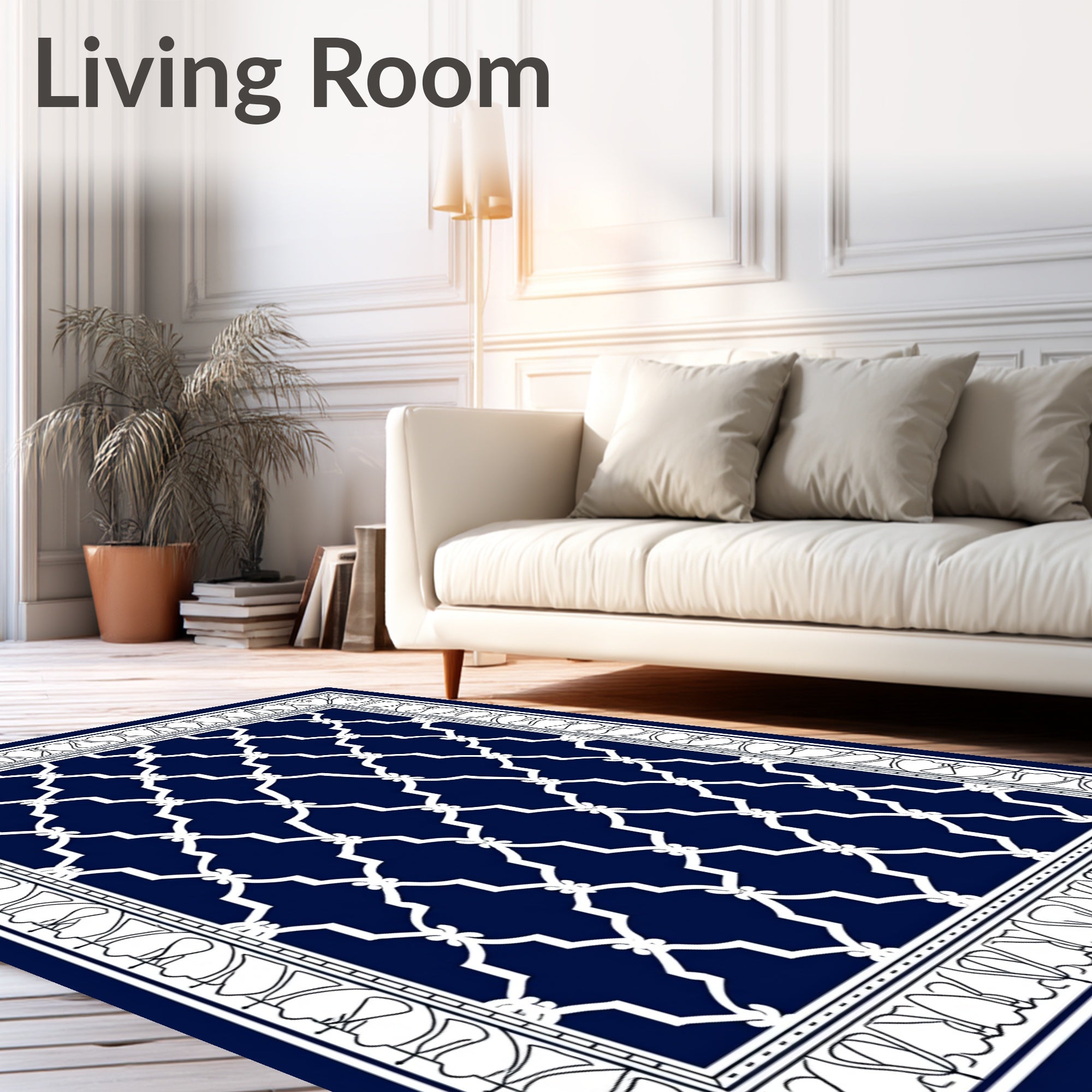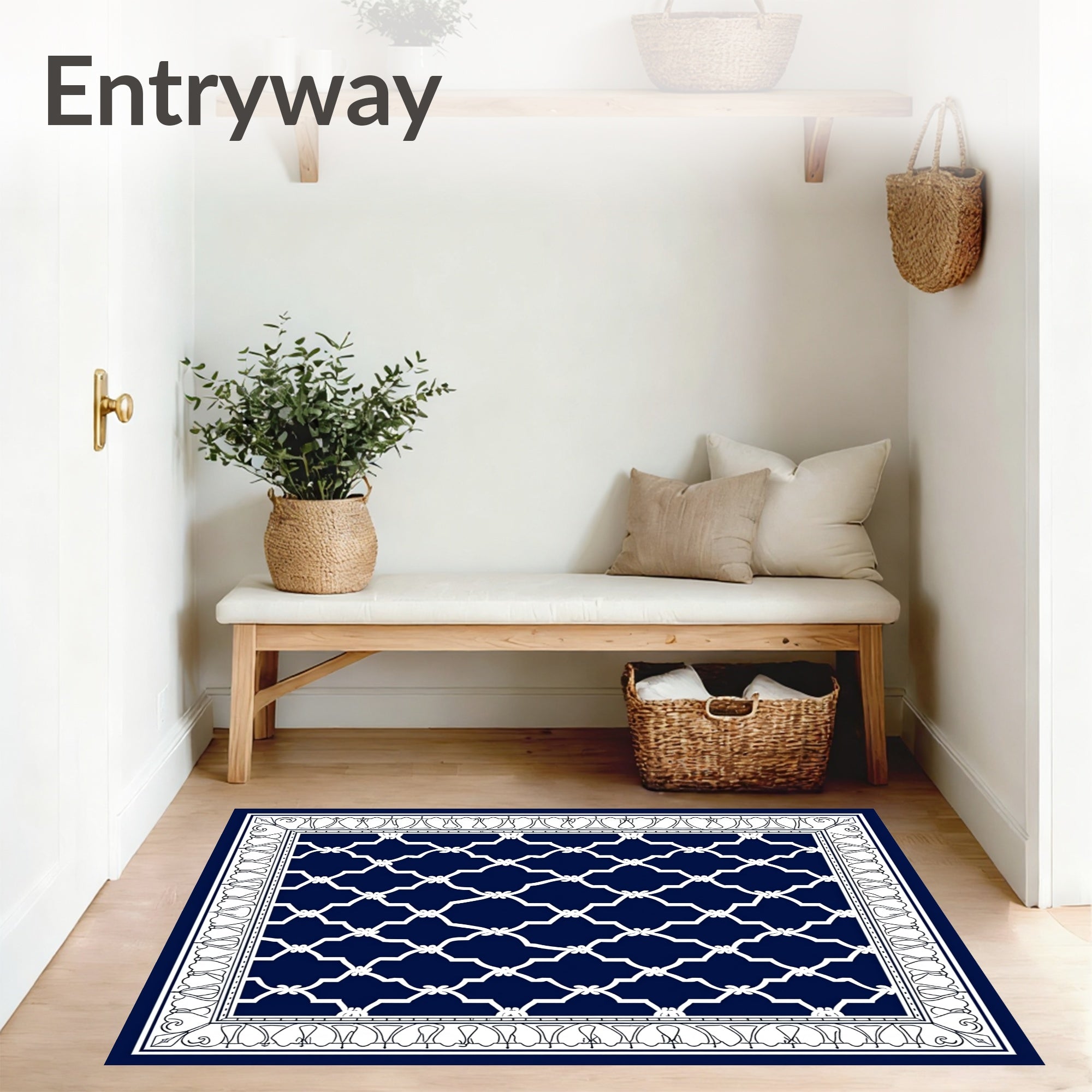 Flatwoven High Traffic Area Rug, Art Inspired Trellis with Stylized Floral Touches, Non Slip, Stain Resistant, Washable Area Rugs for Living Room, Bedroom (Blue) Overview: