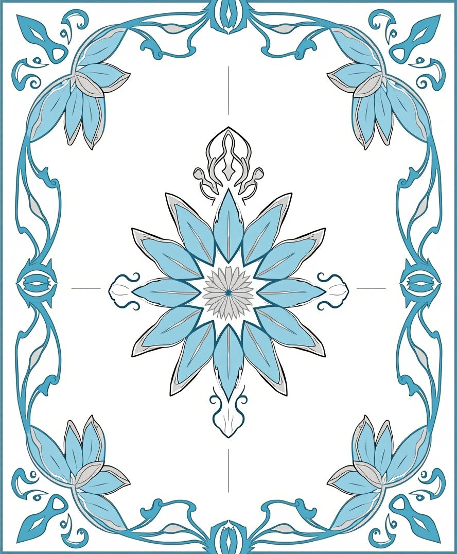 Art Nouveau Blossom Medallion with Flowing Petal Details (Blue)