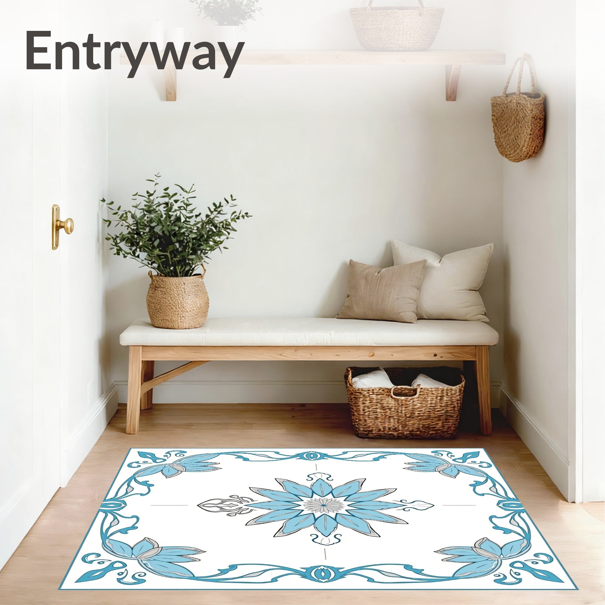 Flatwoven High Traffic Area Rug, Art Nouveau Blossom Medallion with Flowing Petal Details, Non Slip, Stain Resistant, Washable Area Rugs for Living Room, Bedroom (Blue) Overview: