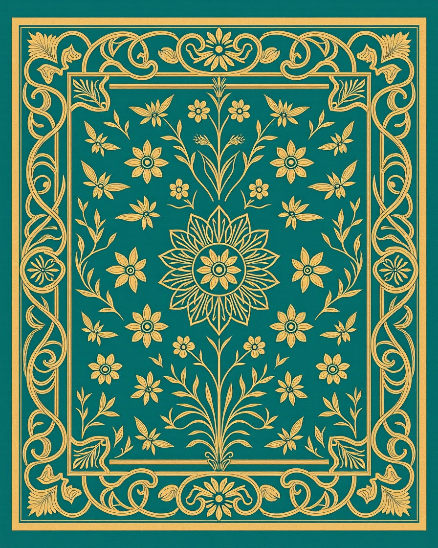 Art Nouveau Insect Parade Featuring Flower Sprigs and Vine Details (Blue)