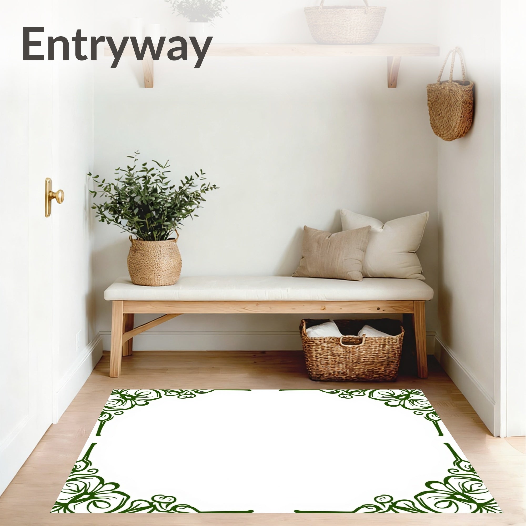Flatwoven High Traffic Area Rug, Art Nouveau Ivy Scrollwork with Whimsical Floral Detailing, Non Slip, Stain Resistant, Washable Area Rugs for Living Room, Bedroom (Green) Overview: