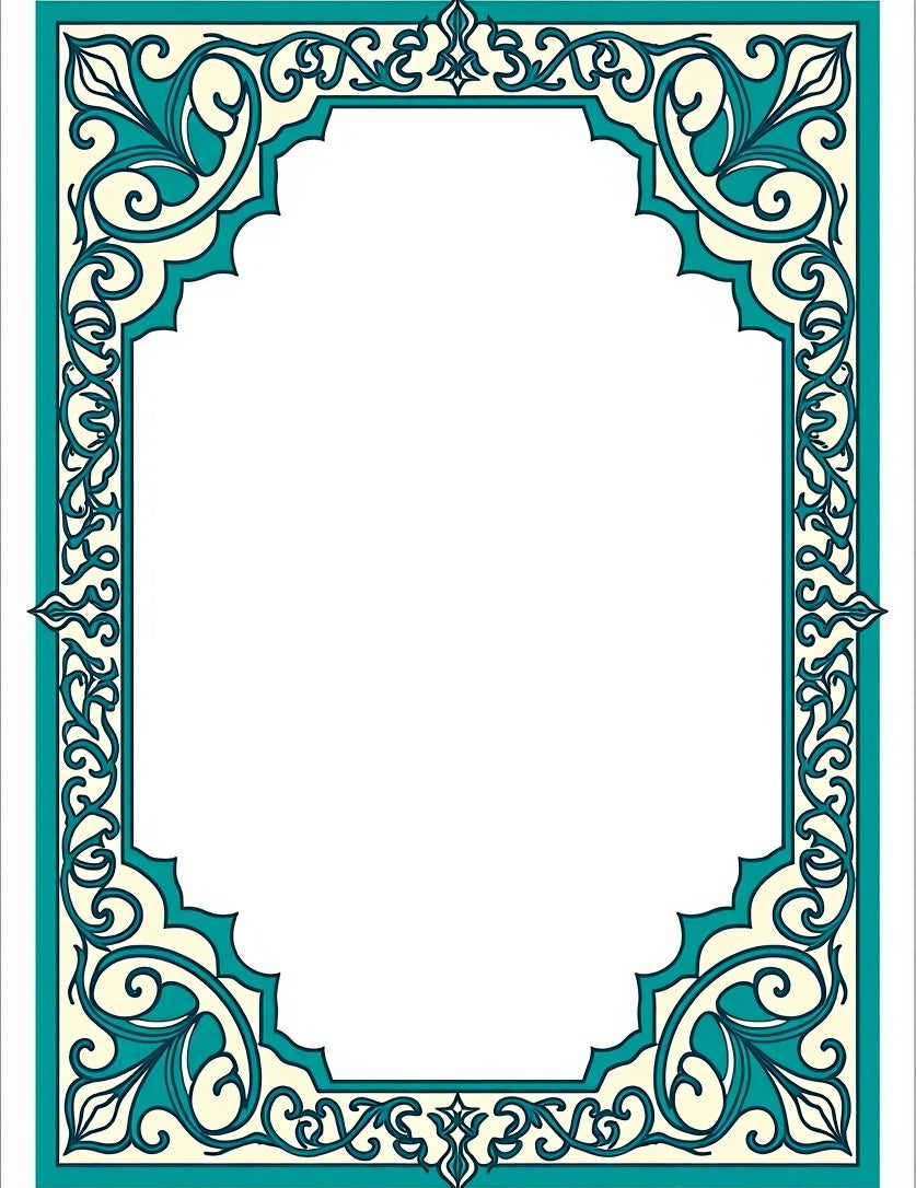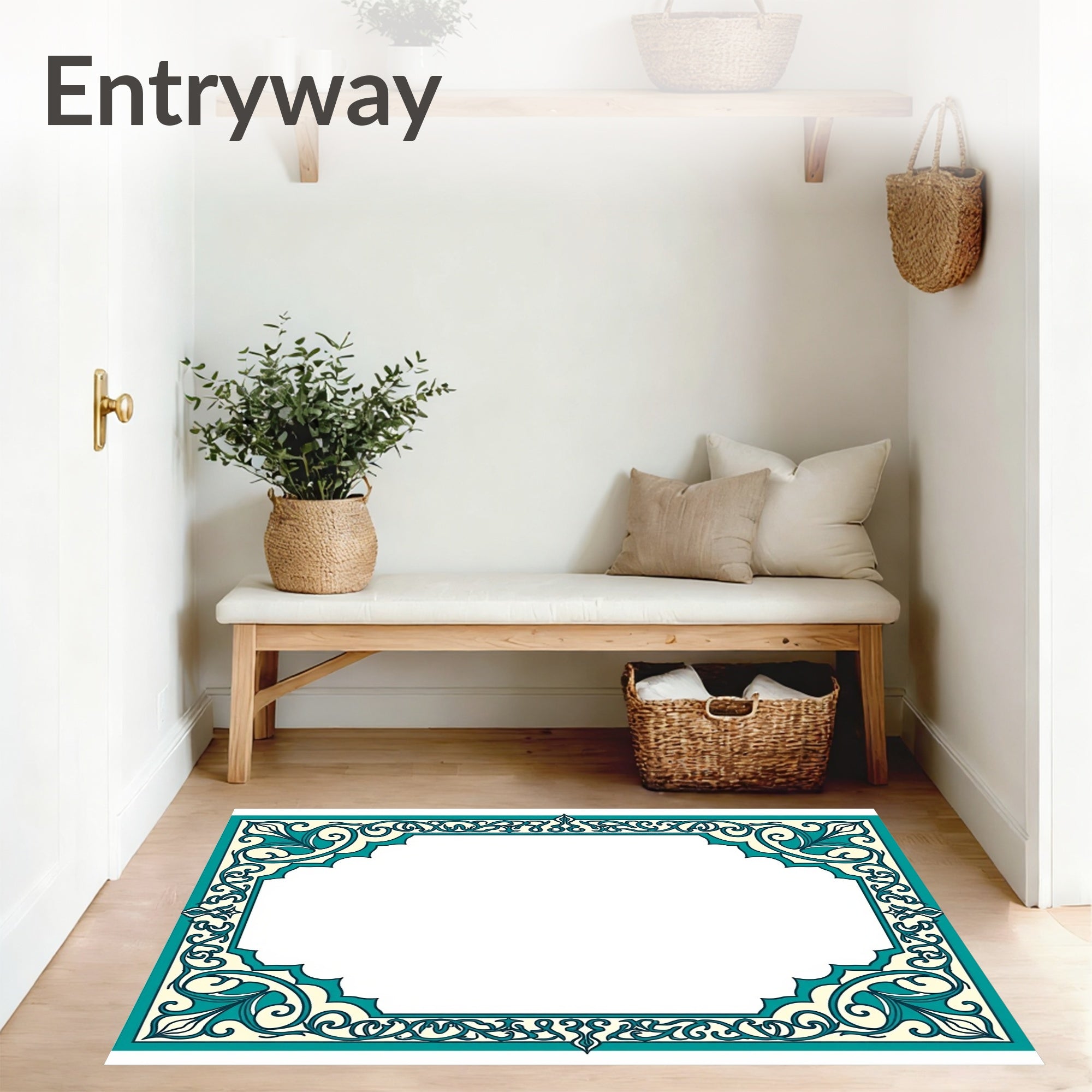 Artisan Bordered Medallion Motif with Interlocking Scroll Accent Design (Teal)