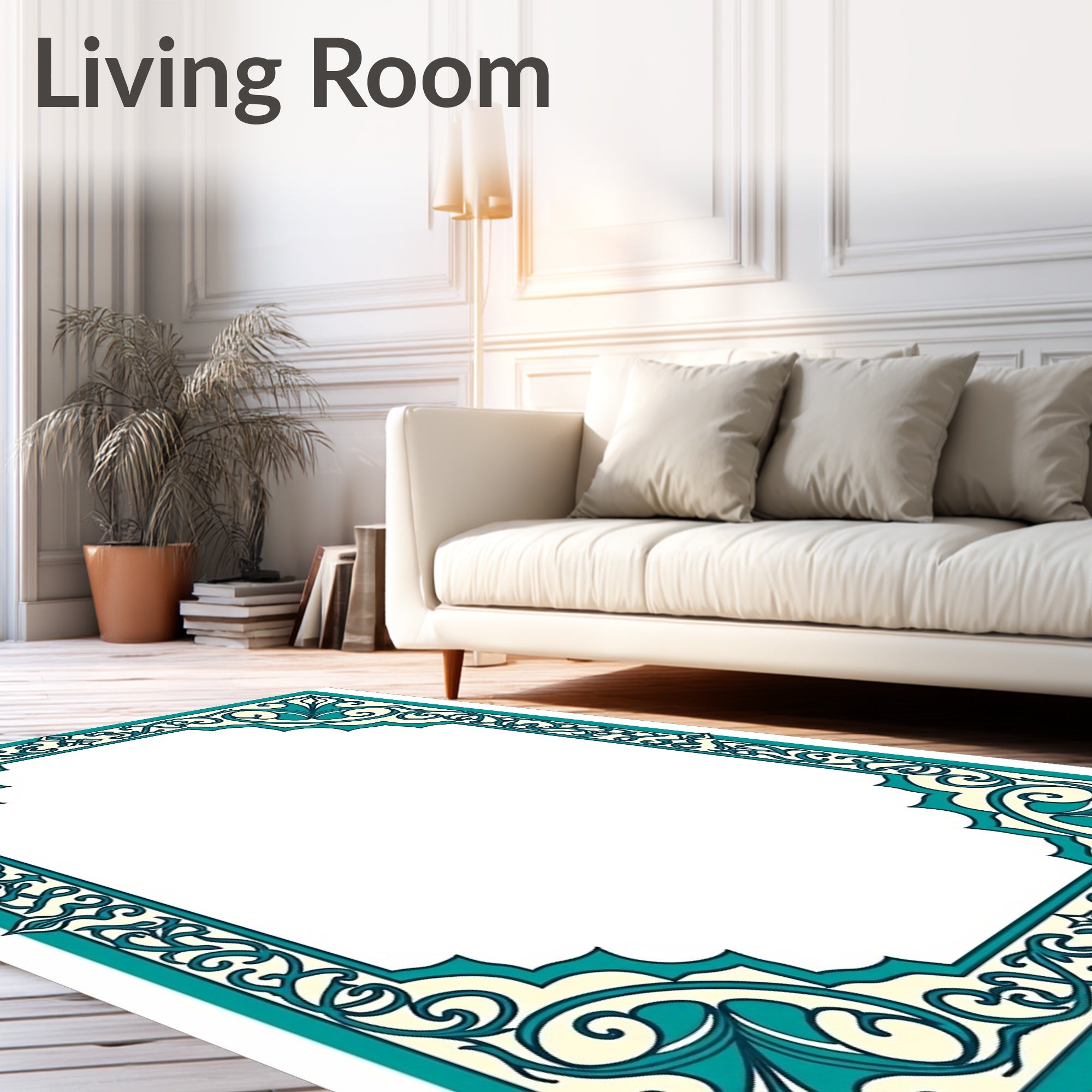 Flatwoven High Traffic Area Rug, Artisan Bordered Medallion Motif with Interlocking Scroll Accent Design, Non Slip, Stain Resistant, Washable Area Rugs for Living Room, Bedroom (Teal) Overview: