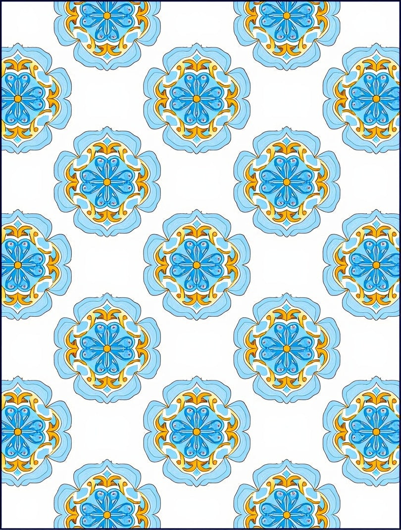 Artisan Brushstroke with Interlocking Floral Medallions (Blue)