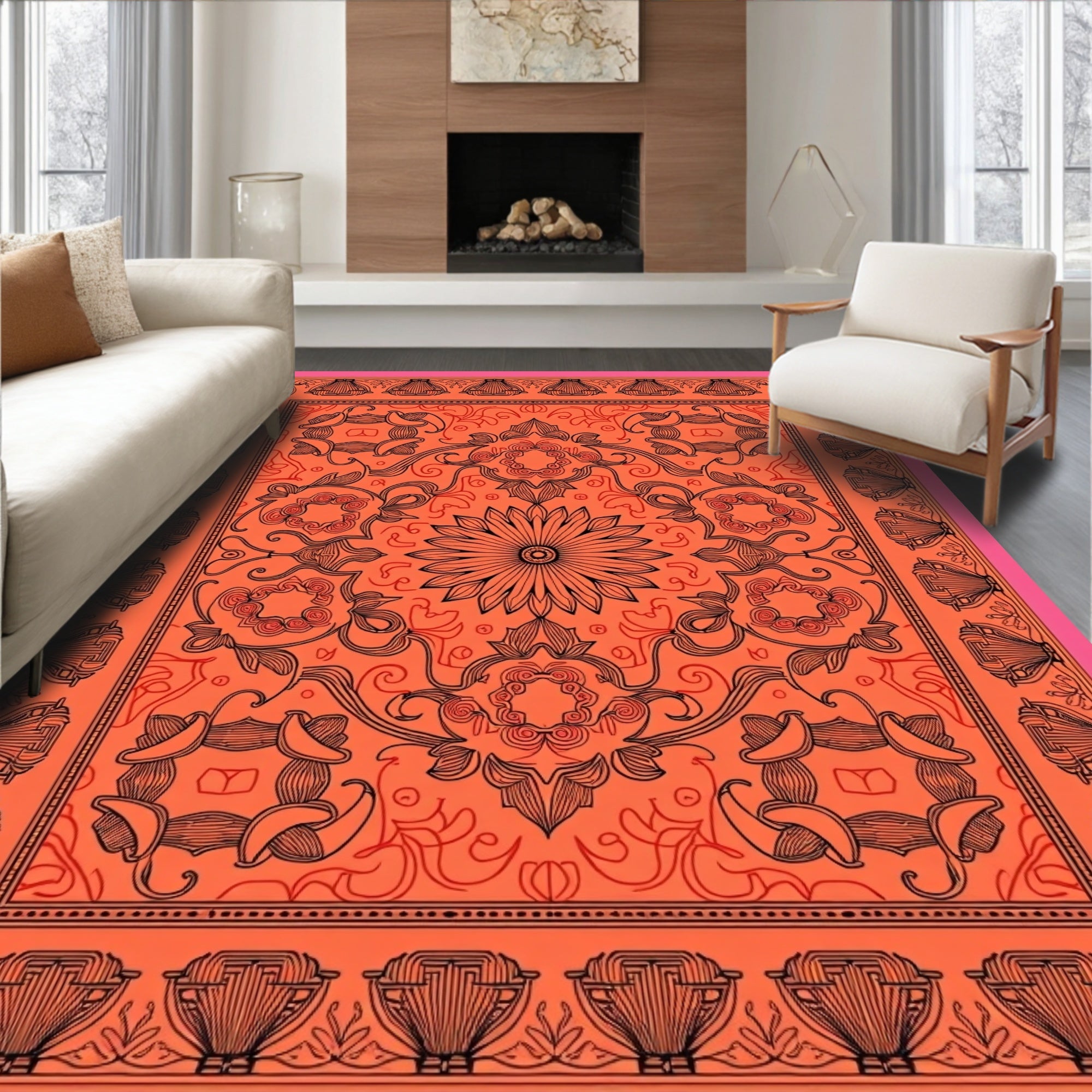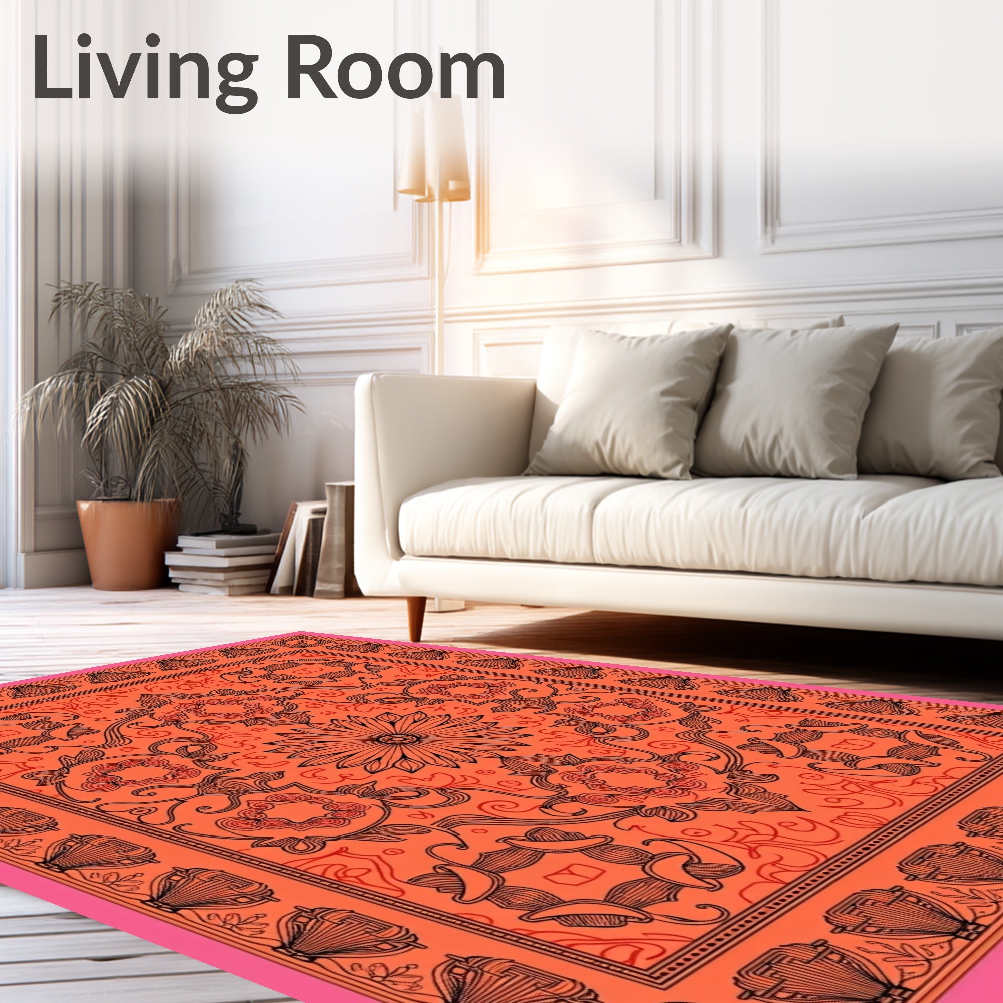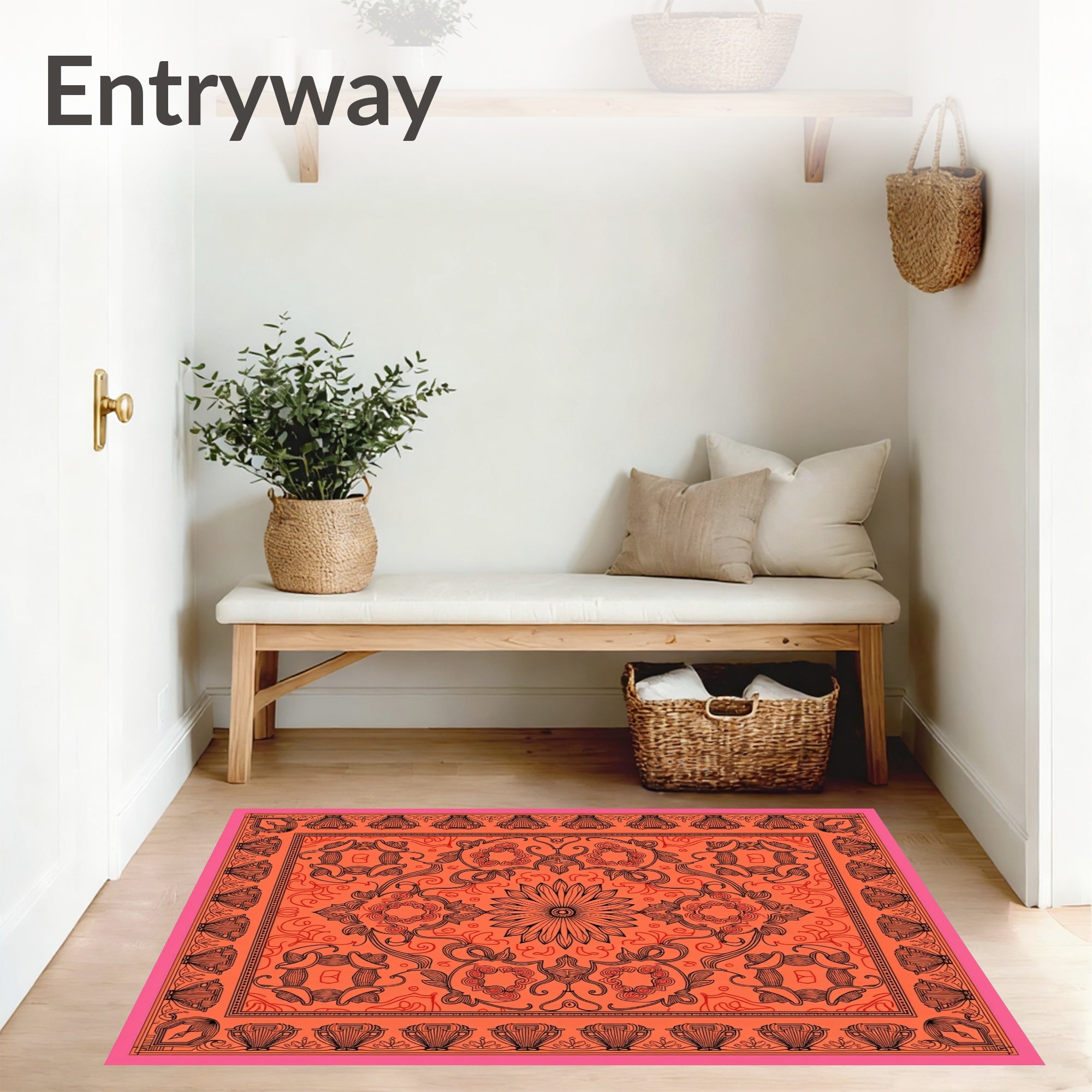 Flatwoven High Traffic Area Rug, Artisan Crafted Heritage Blossom, Non Slip, Stain Resistant, Washable Area Rugs for Living Room, Bedroom (Pink) Overview: