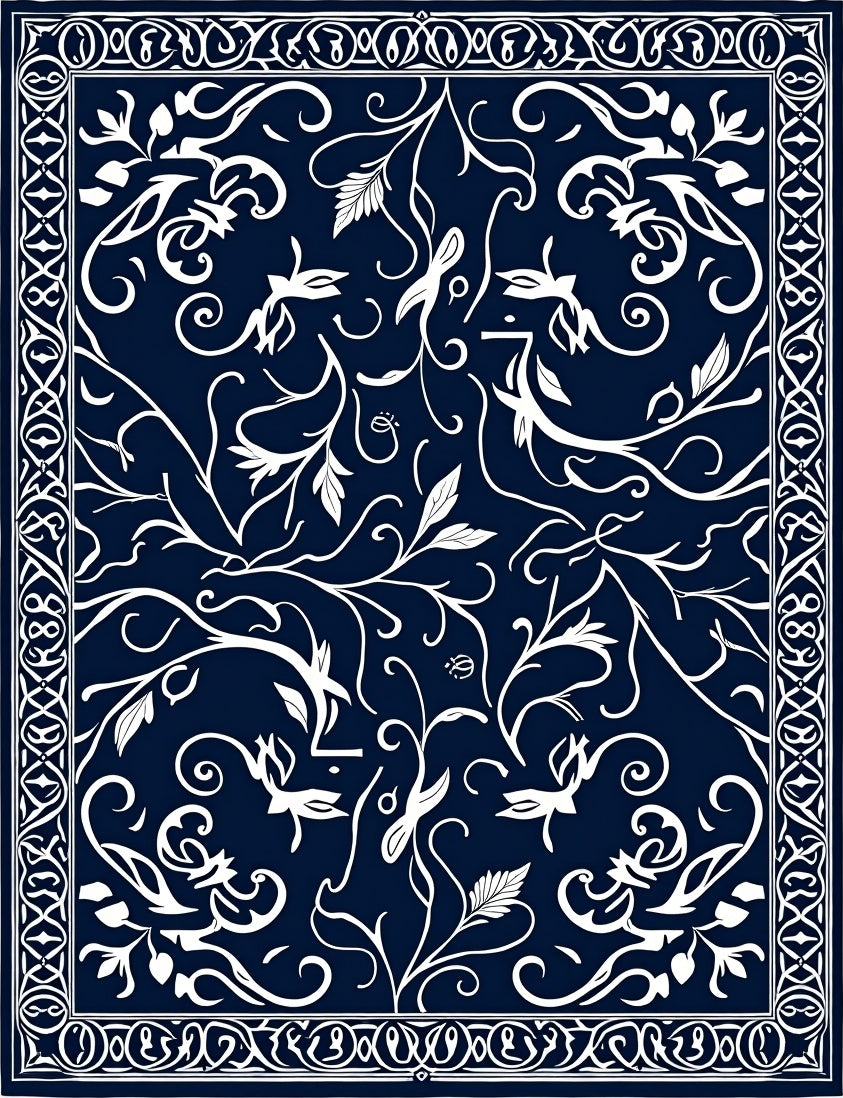 Artisan Floral Scrollwork Interlocking Vine Design (Blue)
