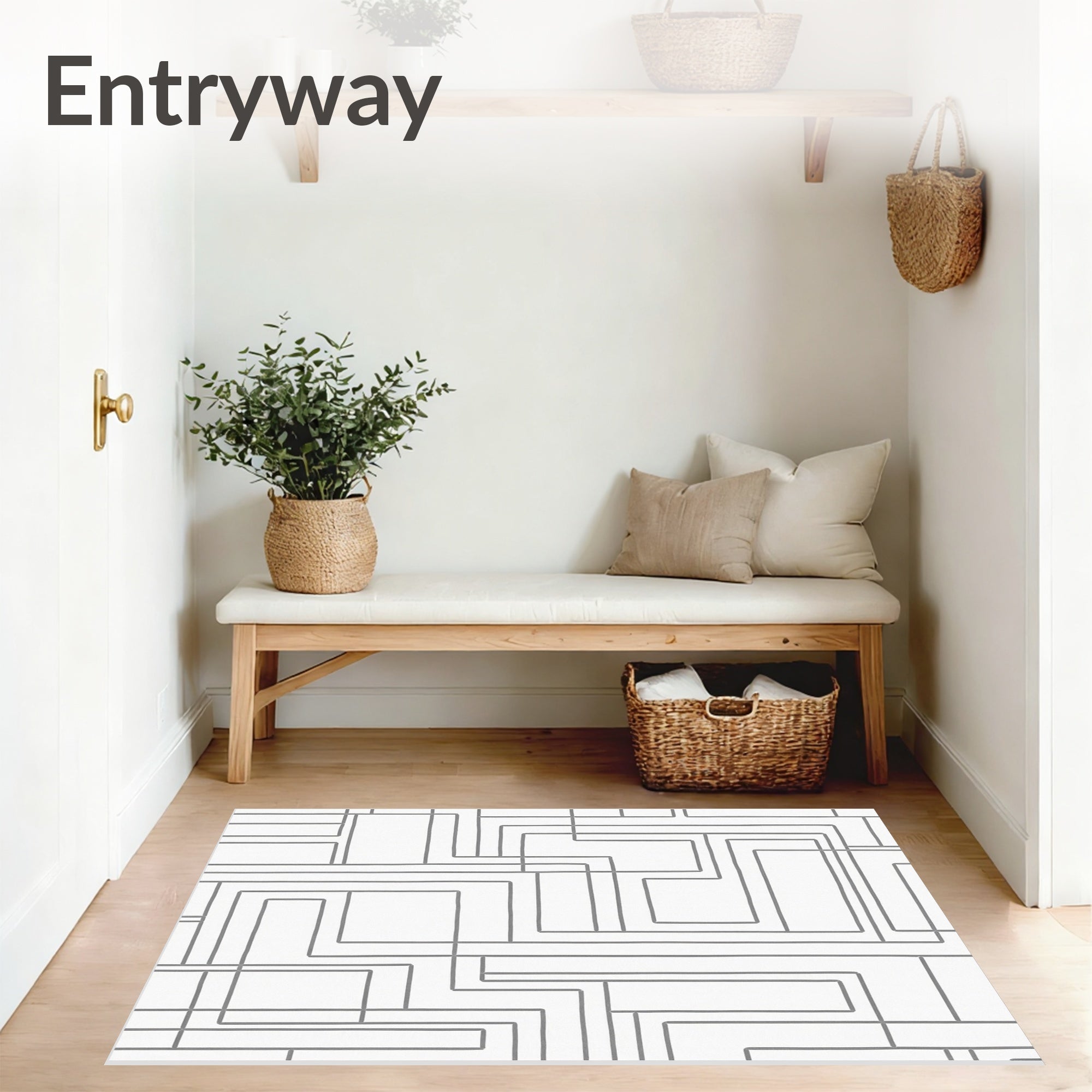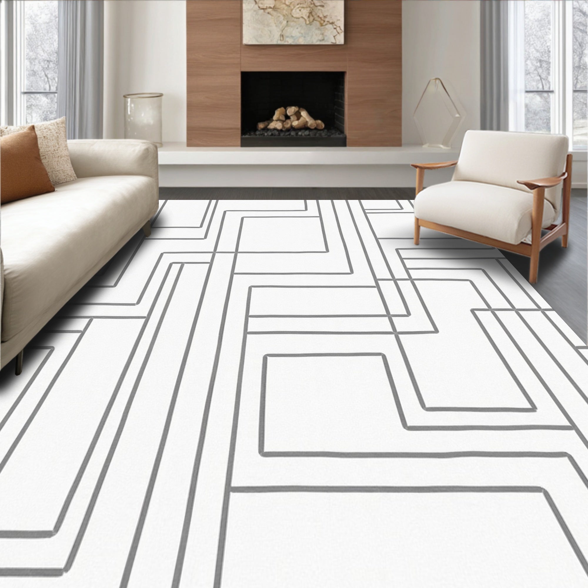Flatwoven High Traffic Area Rug, Artisan Maze Inspired Interlocking Pathway Abstract Motif, Non Slip, Stain Resistant, Washable Area Rugs for Living Room, Bedroom (White) Overview: